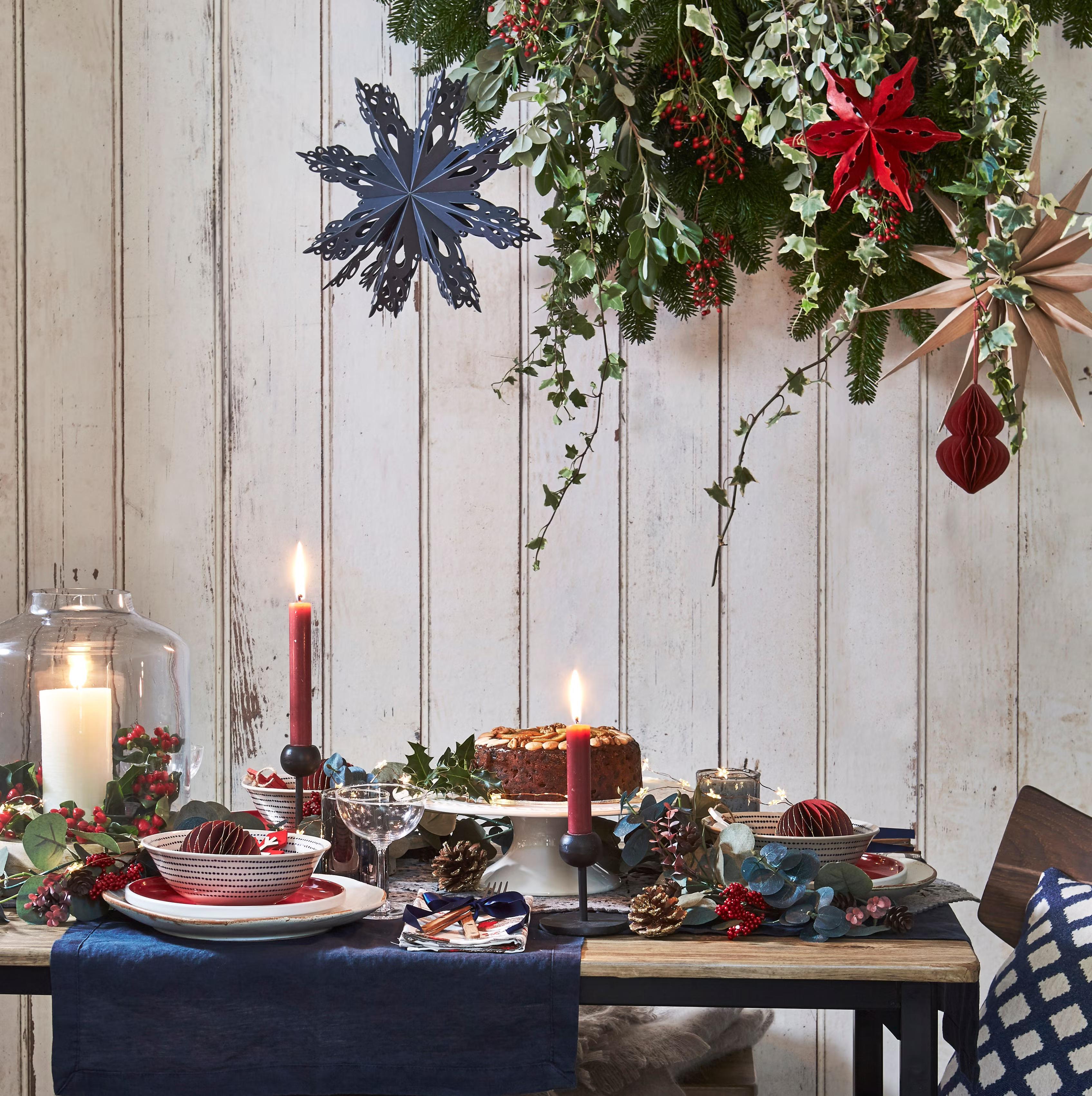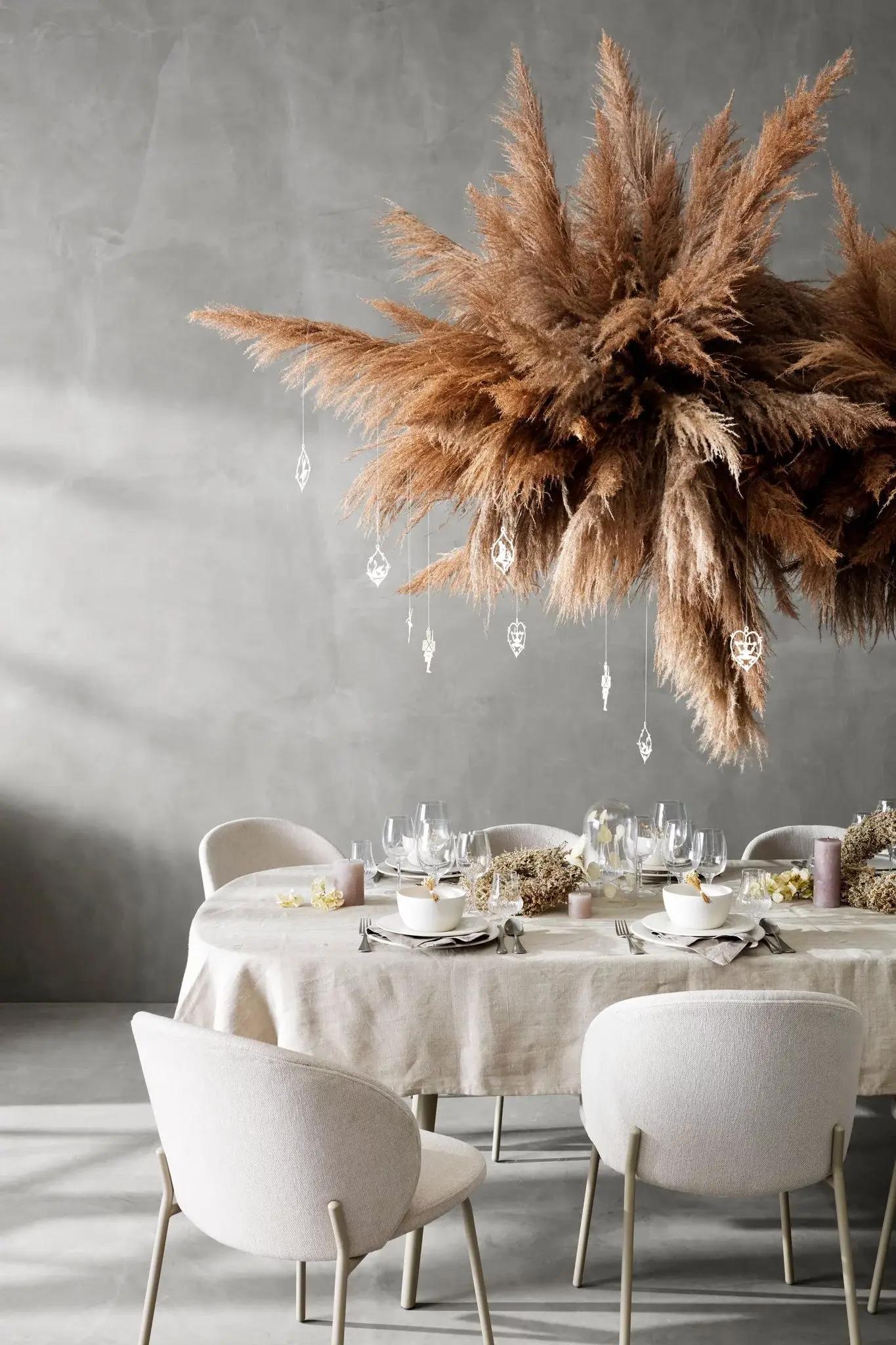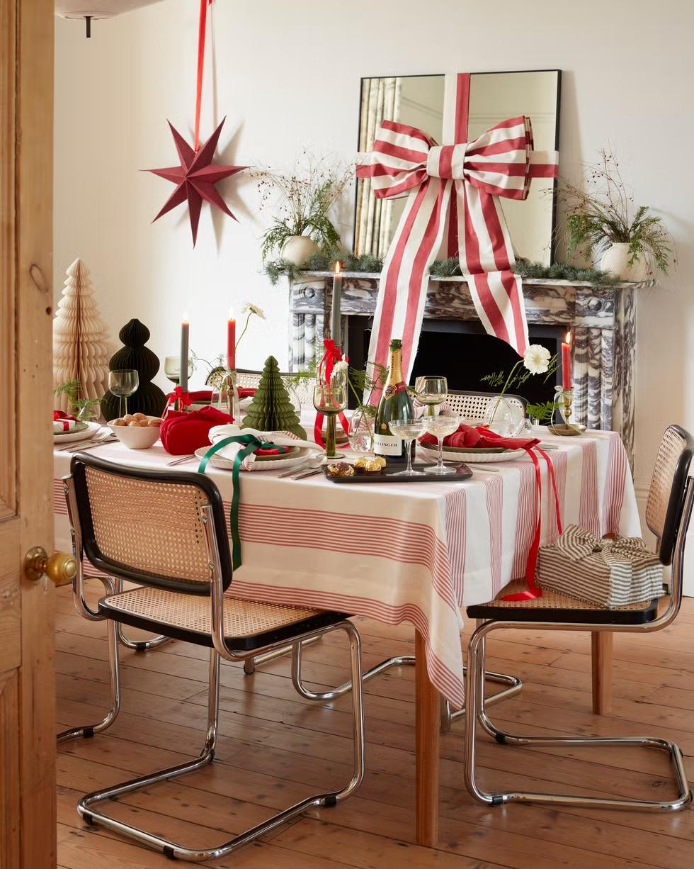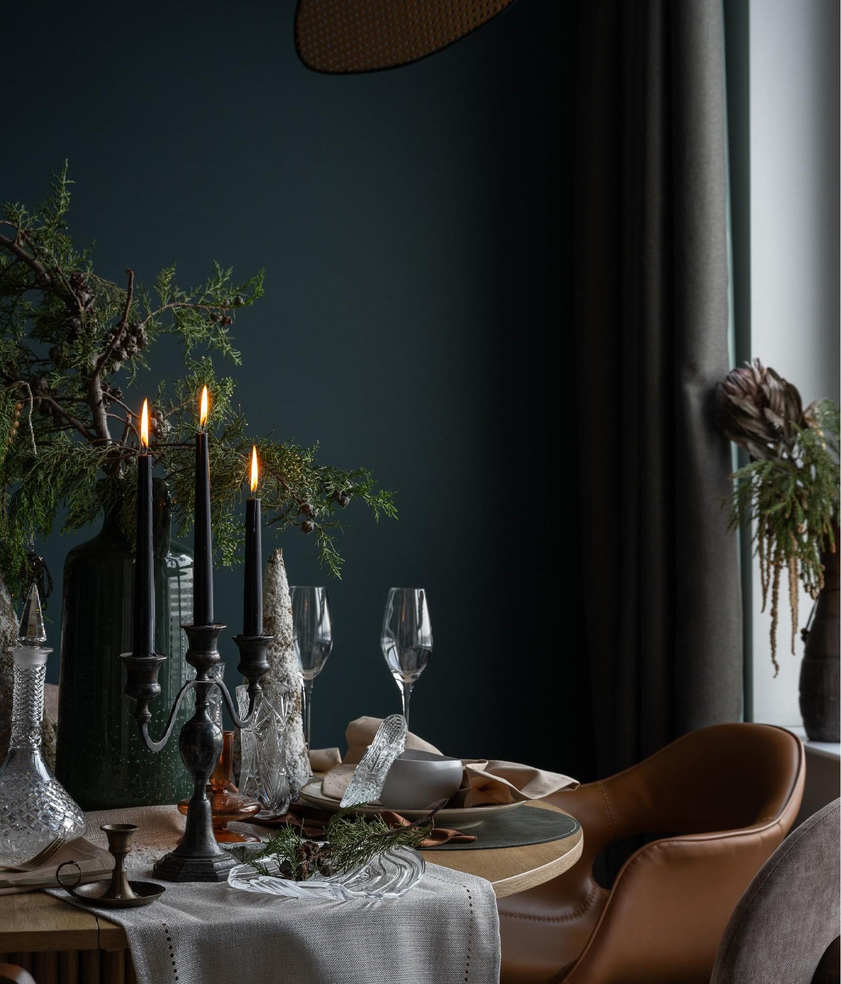 Несколько отрезков мишуры или бумажных снежинок, развешенных на расстоянии друг от друга, не создадут того самого «вау»-эффекта. Нужно сосредоточить украшения в одном месте. Идеально подойдет зона над обеденным столом, если это не будет мешать освещению.