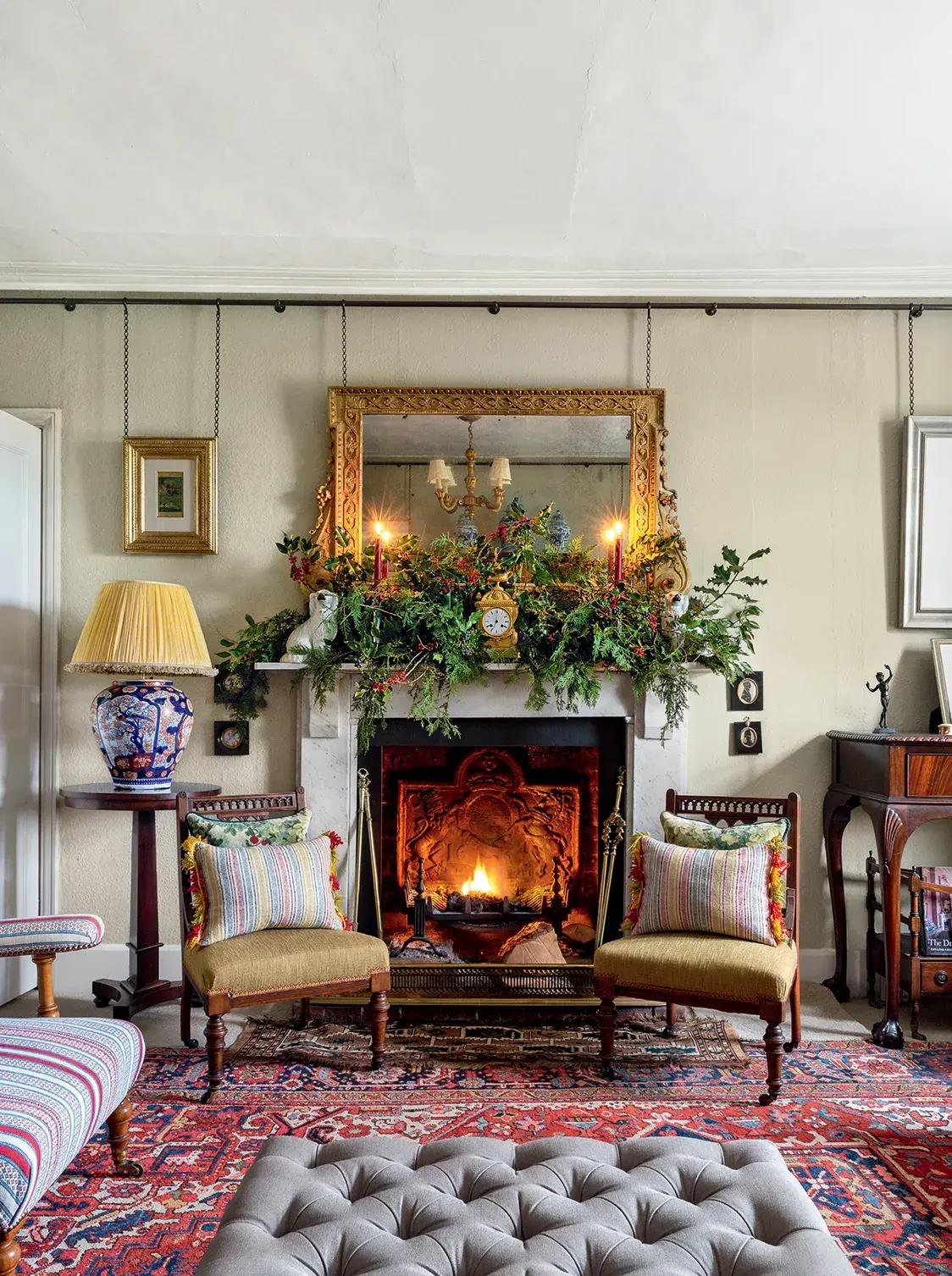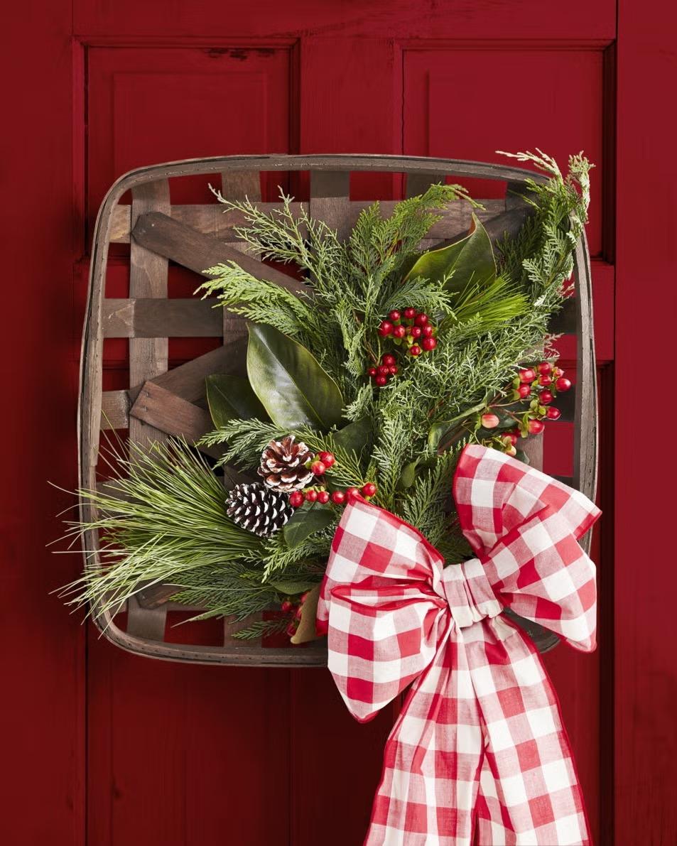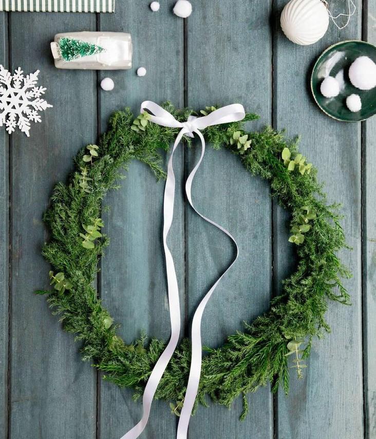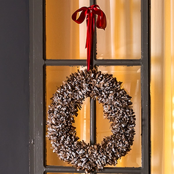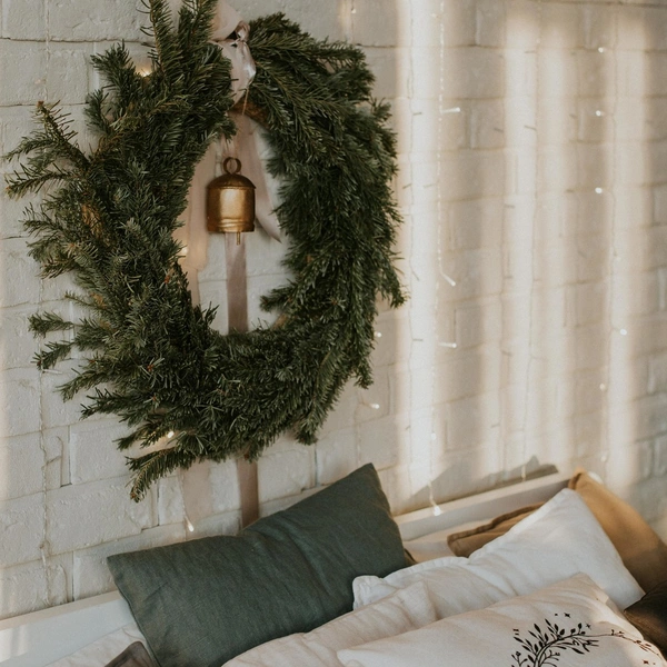 Пышные новогодние венки подходят не только для входных дверей. Купите (или сделайте) самый красивый, какой только сможете найти, и повесьте его на стену над диваном, обеденным столом или даже над кроватью — везде, где есть свободное место на стене.