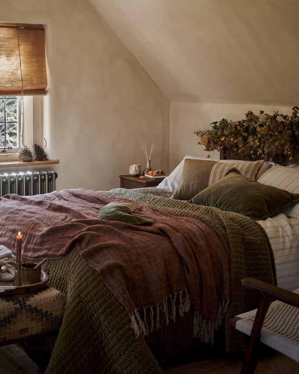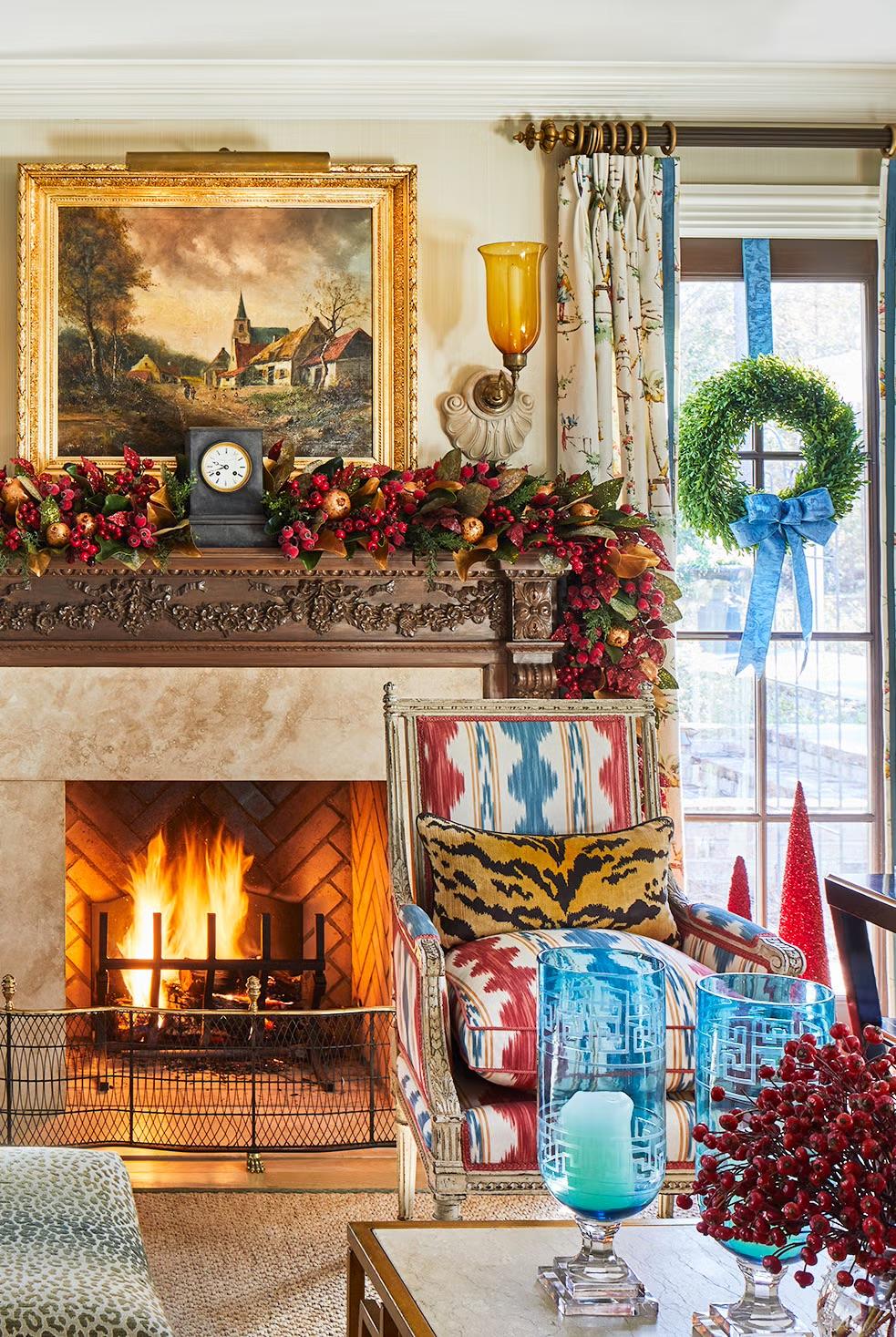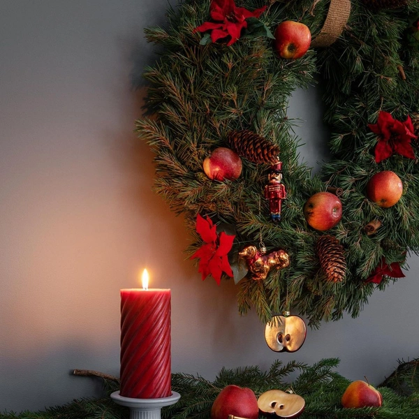 Пышные новогодние венки подходят не только для входных дверей. Купите (или сделайте) самый красивый, какой только сможете найти, и повесьте его на стену над диваном, обеденным столом или даже над кроватью — везде, где есть свободное место на стене.