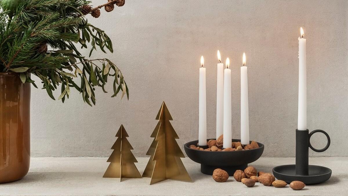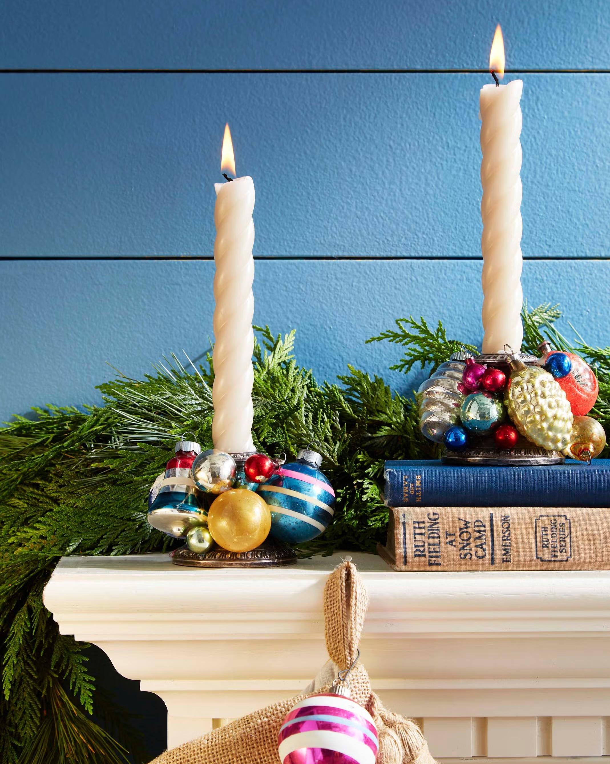 Даже в самых маленьких комнатах найдется место для нескольких декоративных ваз. Наполните их каштанами, стеклянными шариками и сезонными фруктами, а между ними расставьте множество свечей. Используйте подсвечники разной высоты, канделябры и чайные свечи с красивыми стеклянными плафонами.