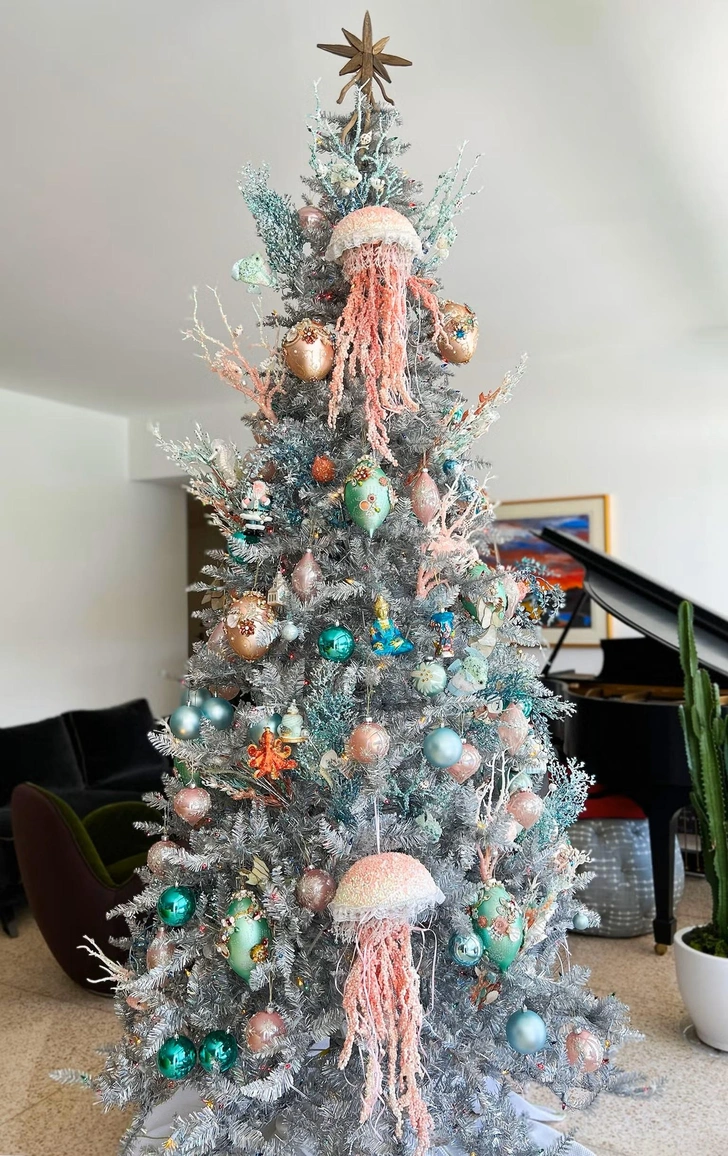 Определитесь со стилем: классическое золото и бархат, скандинавский минимализм в светлых тонах, зимняя сказка с серебром и синевой. Четкая тема поможет осознанно подбирать цвета, игрушки и аксессуары, создавая целостную картину, а не набор разрозненных элементов.