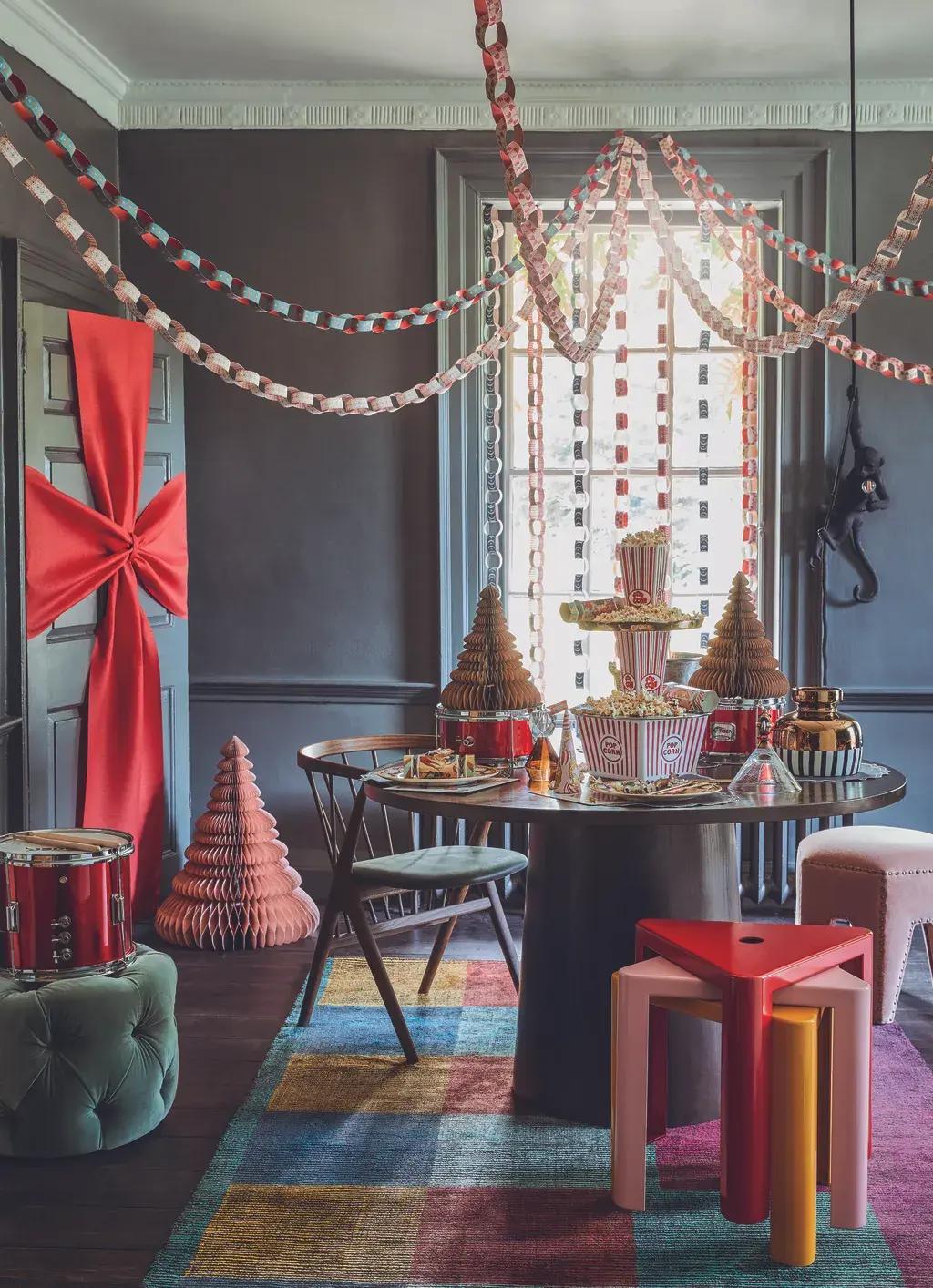 Не бойтесь добавить немного легкости и веселья. Бумажные гирлянды, повешенные над столом, создадут радостное настроение и сделают зону стола главным праздничным акцентом в комнате.