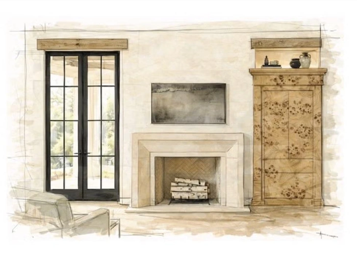 Проект компании Monogram, предлагающей облицовывать технику дорогими материалами (шпоном редких пород дерева) и встраивать ее в неожиданные места — например, поставить холодильник у камина