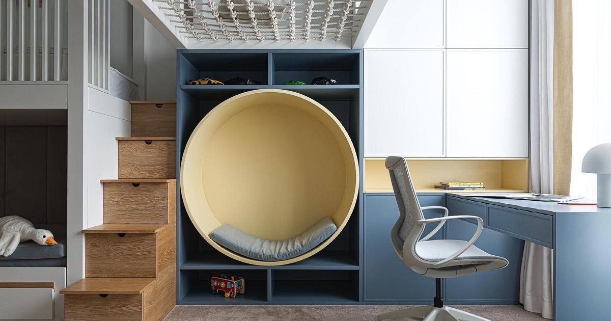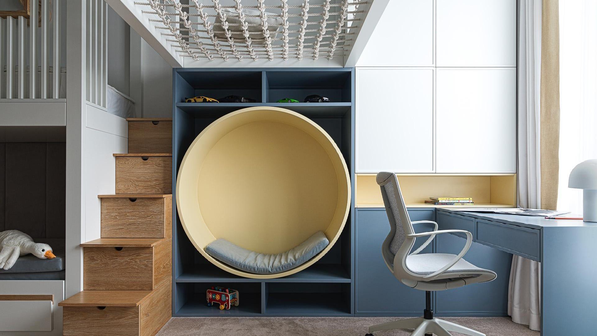 Под любое увлечение ребенка лучше создать отдельную зону. Если он занимается актерским мастерством, можно сделать небольшой подиум. Если музыкой — организовать место для музыкального инструмента с этажеркой для нот, учебников и тетрадей. Для активных и спортивных детей подойдет шведская стенка с небольшим матом — она занимает немного места, но позволит выполнять минимальный набор физических упражнений. Главное, надежно ее закрепить, чтобы она не представляла опасности для ребенка.