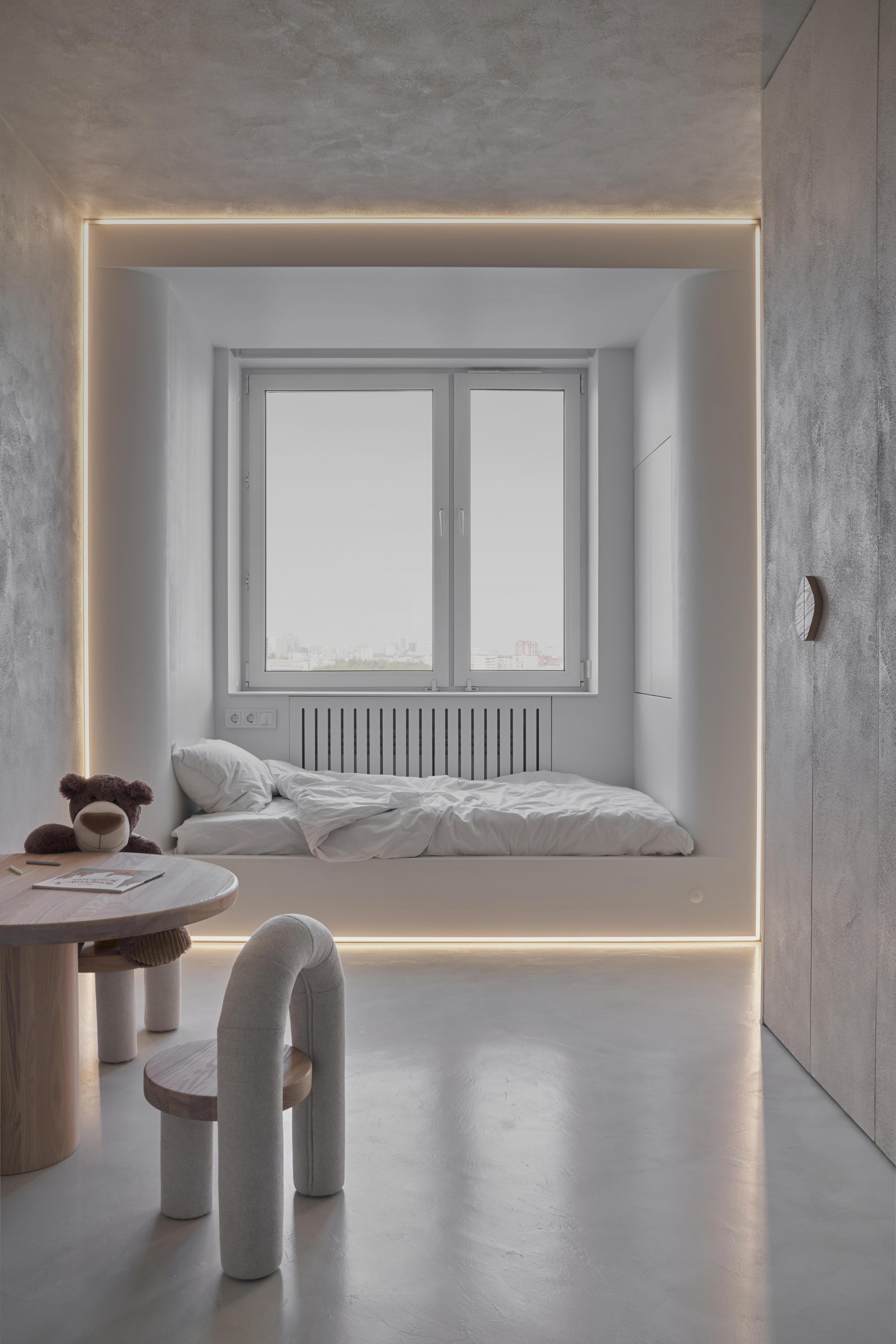 Скрытый свет — это не фокус ради фокуса, это способ собрать объем. Так, например, ниша в ванной, выложенная крупноформатным керамогранитом и подсвеченная изнутри, превращается в арт-объект. Тонкие линии в плоскости потолка создают ощущение парящего канта и снимают необходимость в многочисленных светильниках.