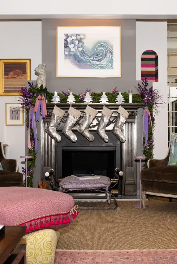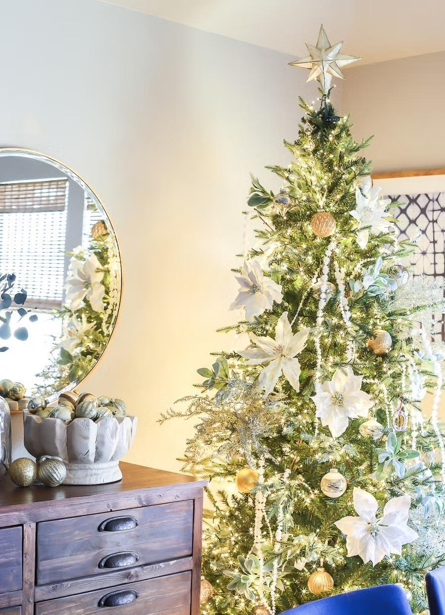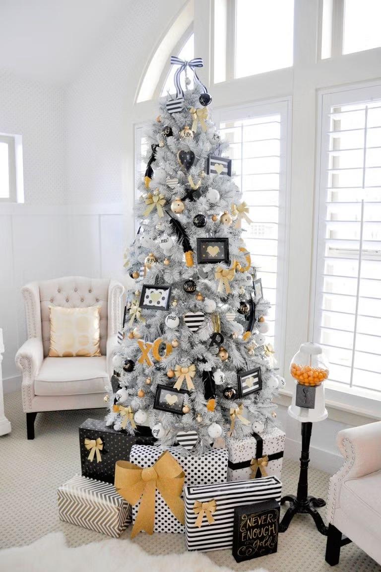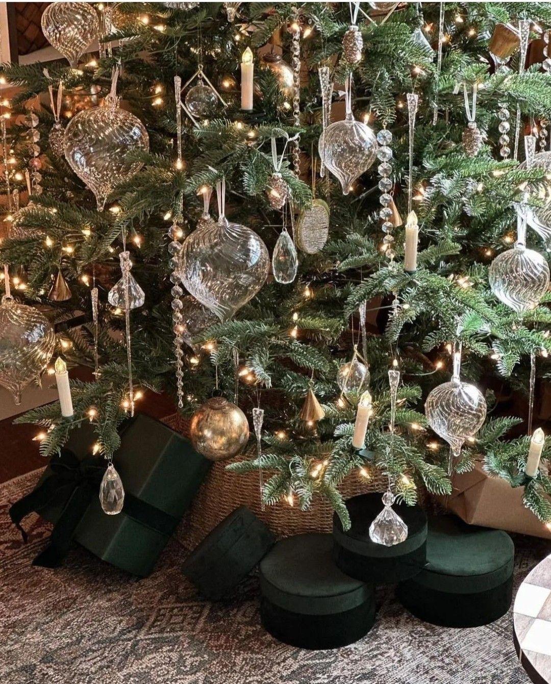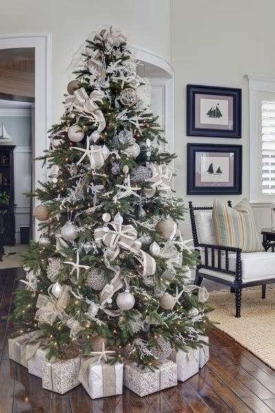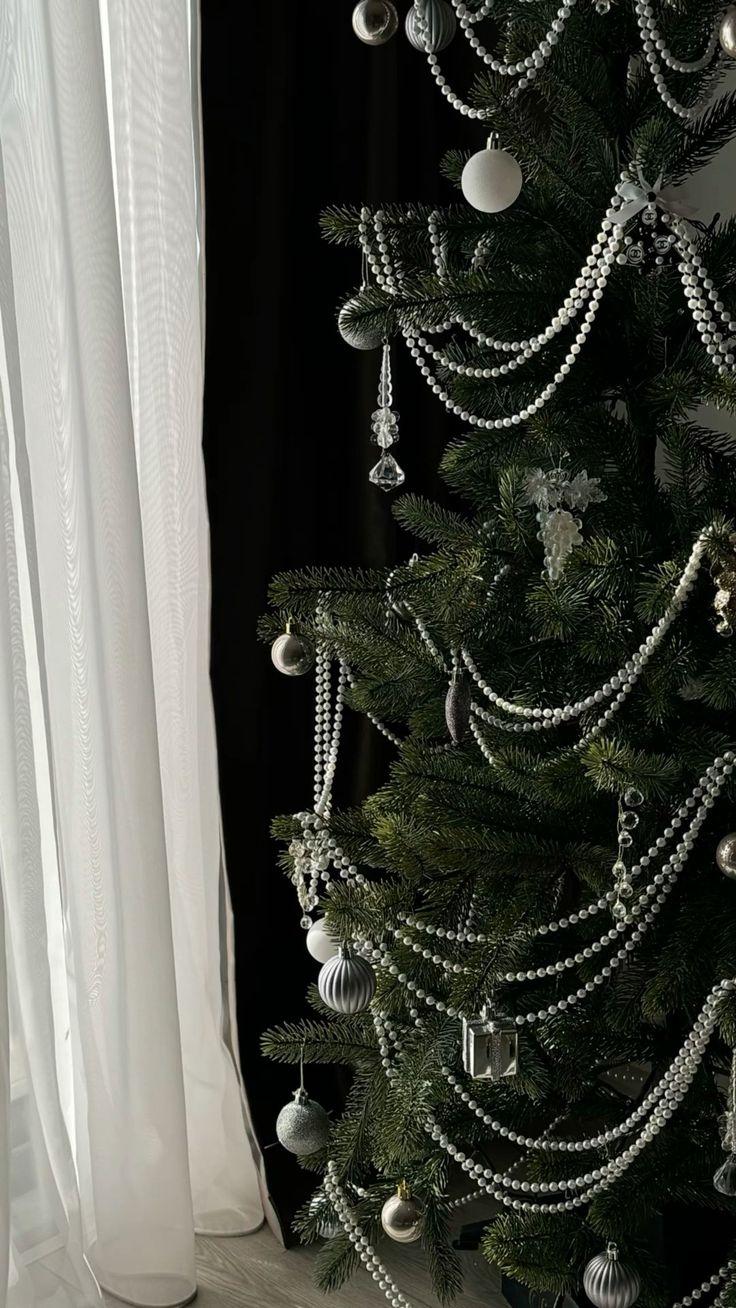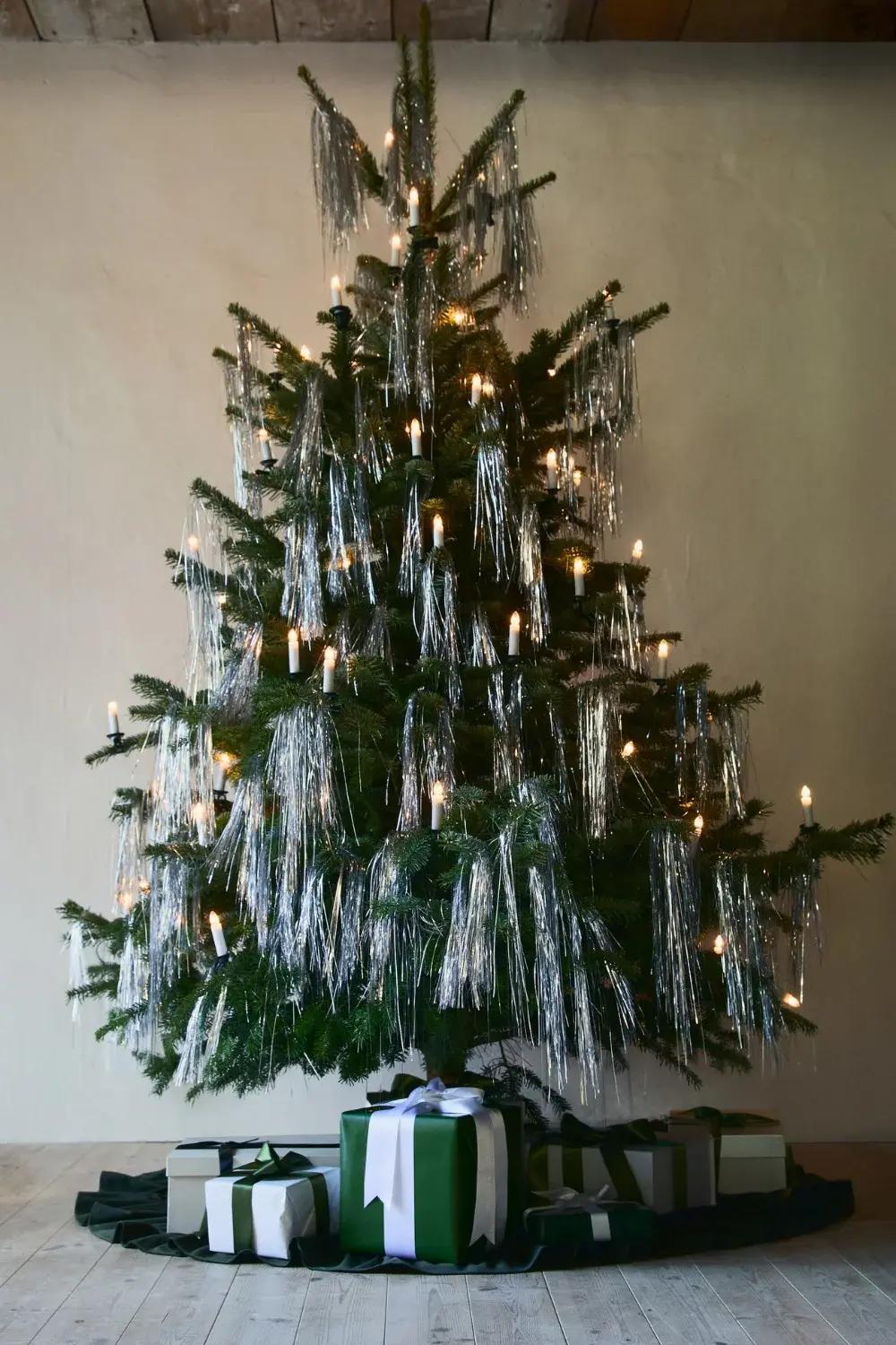 Серебристый уже не кажется чем-то необычным — зато как красиво он сияет на фоне ели. Несмотря на то, что он довольно традиционен для новогоднего украшения, дизайнеры находят любопытные интерпретации.