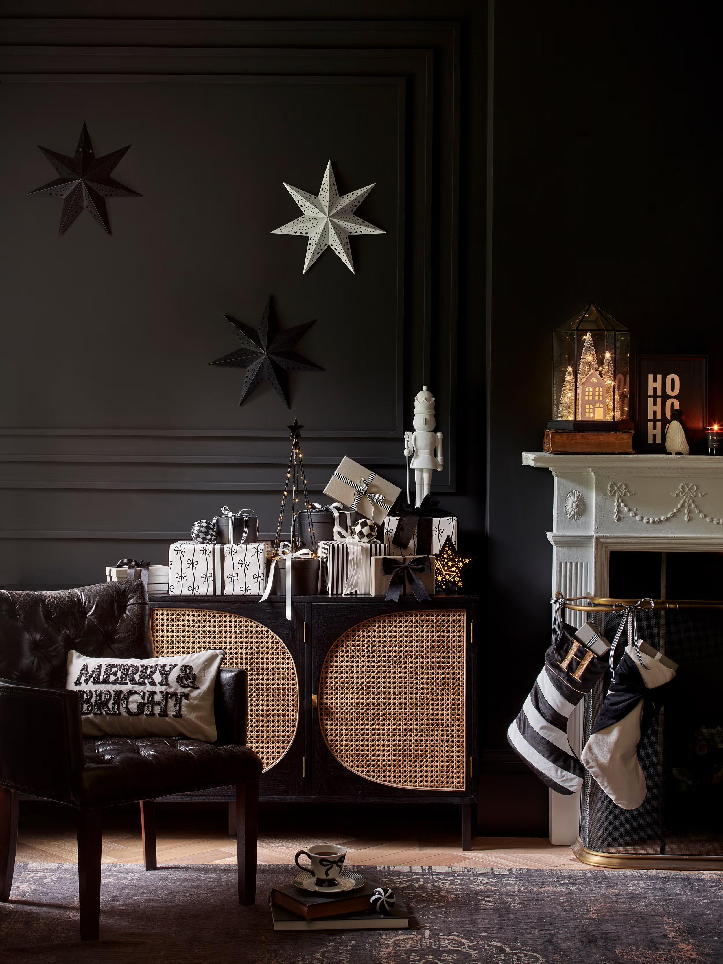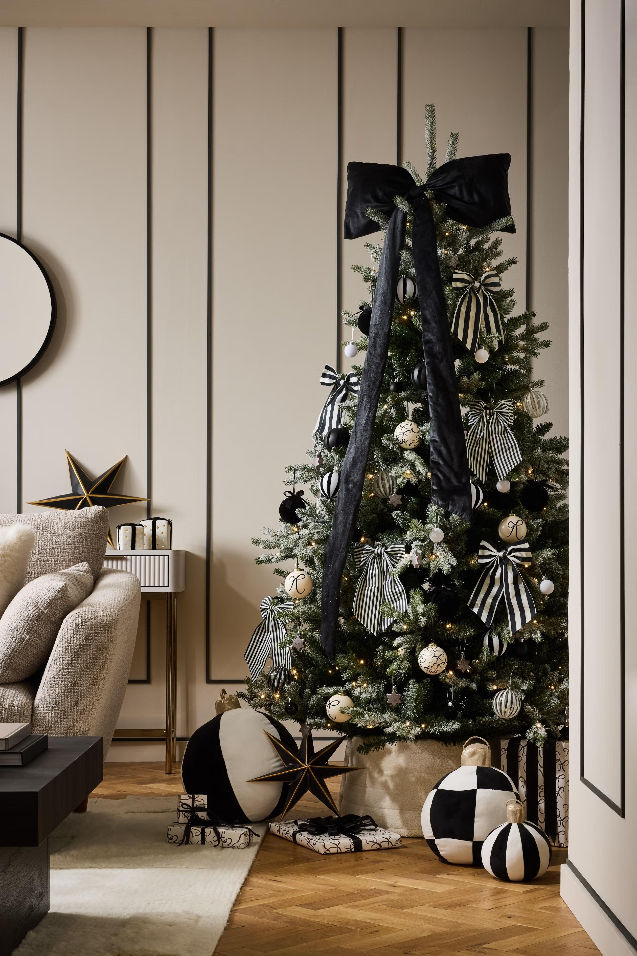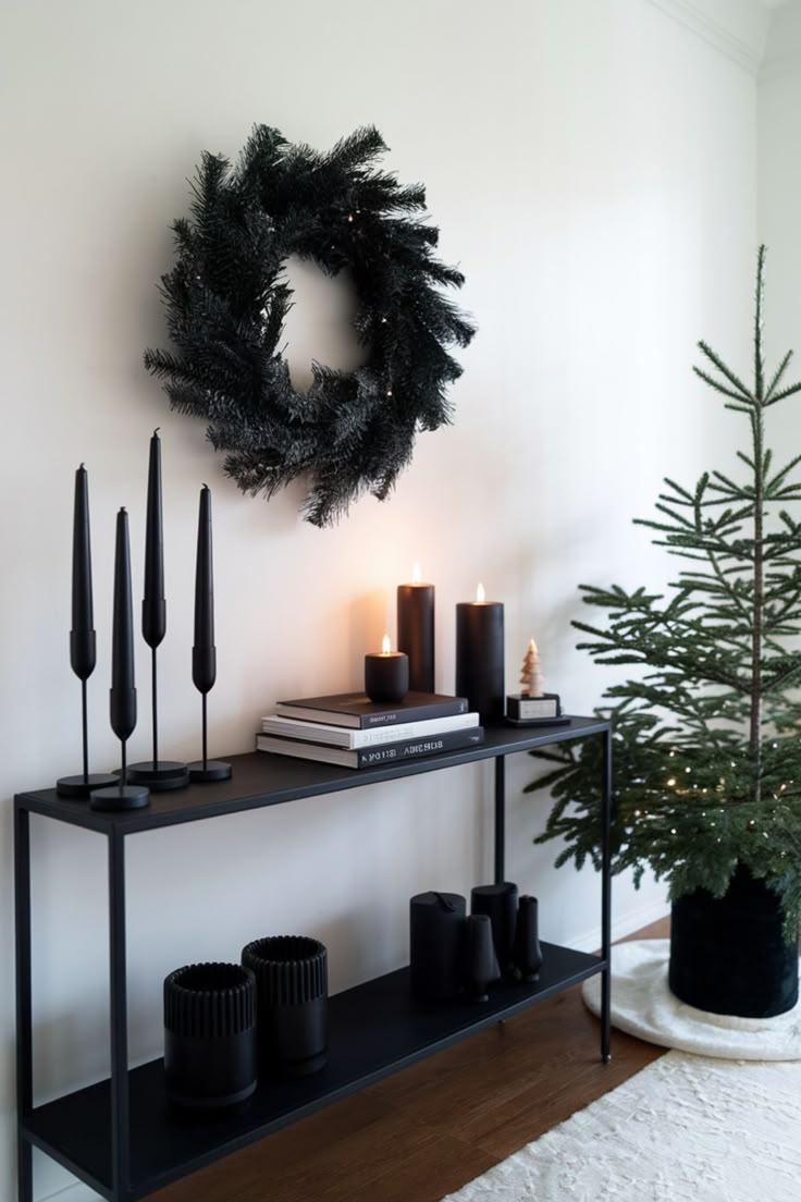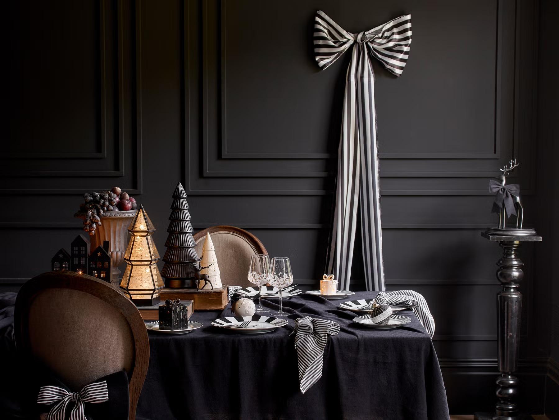 А вот это — не самый популярный вариант для новогоднего декора. У многих он ассоциируется с мрачными поводами или с какой-нибудь готической вечеринкой, но уж точно не с Новым годом. Тем не менее, стилисты продолжают предлагать интересные варианты с черным декором.