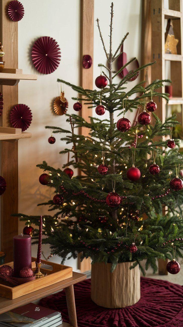 Пожалуй, самый популярный оттенок для Нового года, никогда не устареет. Он смотрится благородно и отлично сочетается с цветом темного дерева, зеленым или позолотой.