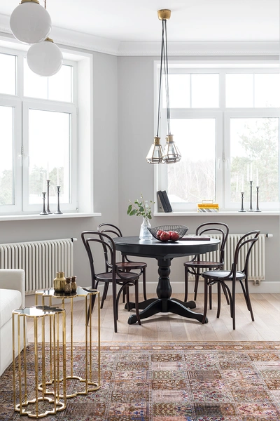 Паркет, Finex. Краска, Derufa. Диван, Estetica. Журнальные столики, Tок. Корпусная мебель, «Столярная Мастерская Fabbri». Светильник, Slamp. Комод, Dantone Home. Стулья, Bollu. Ковер, Carpet Dеcor Scanddy. Винтажное стекло, Sand Vintage Gallery. Декор, Moon Stores. Квартира в Москве, проект Марии Поповой