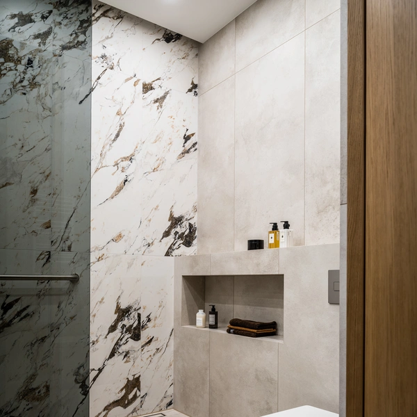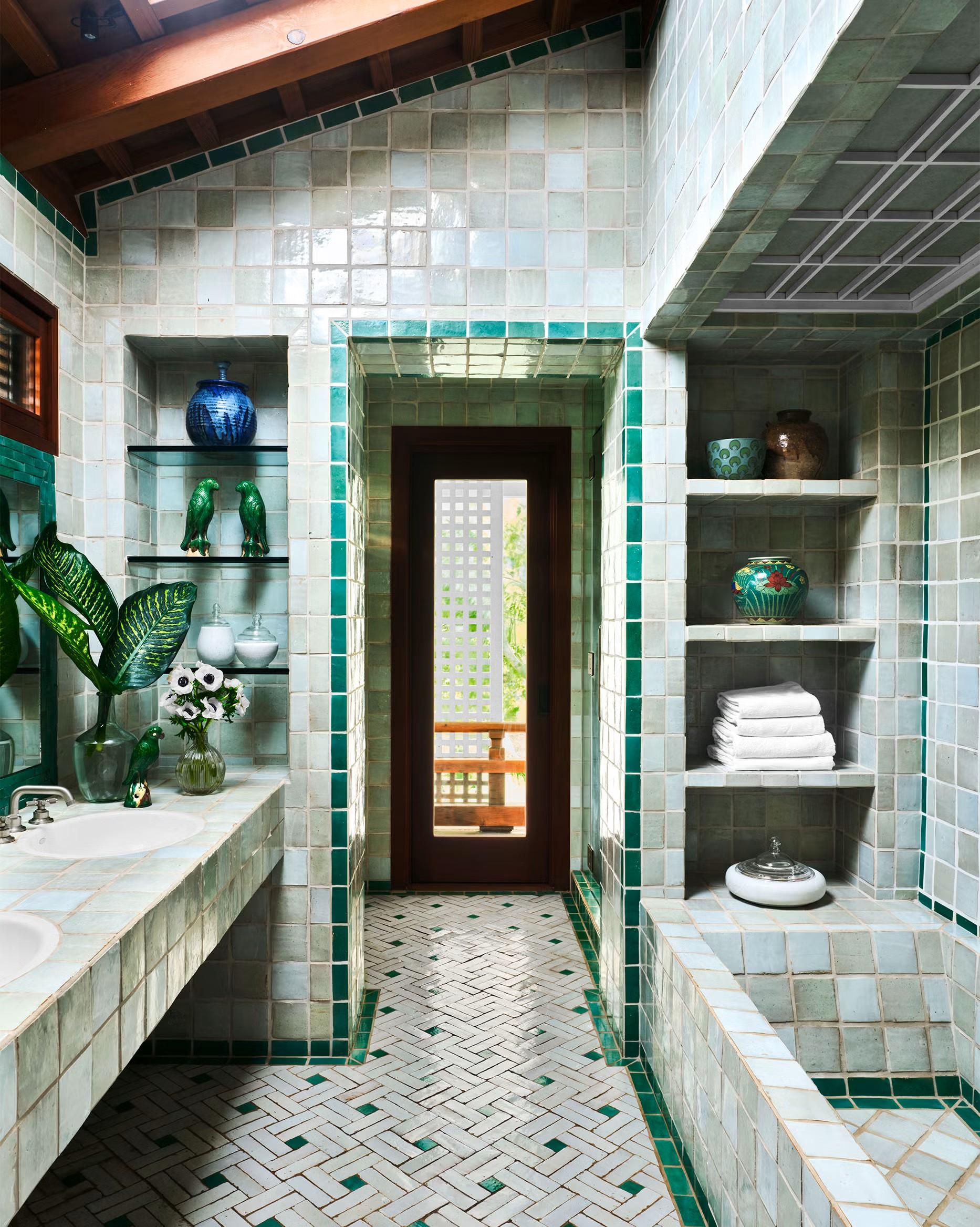 6. Ниши в душе, отделанные декоративной плиткой