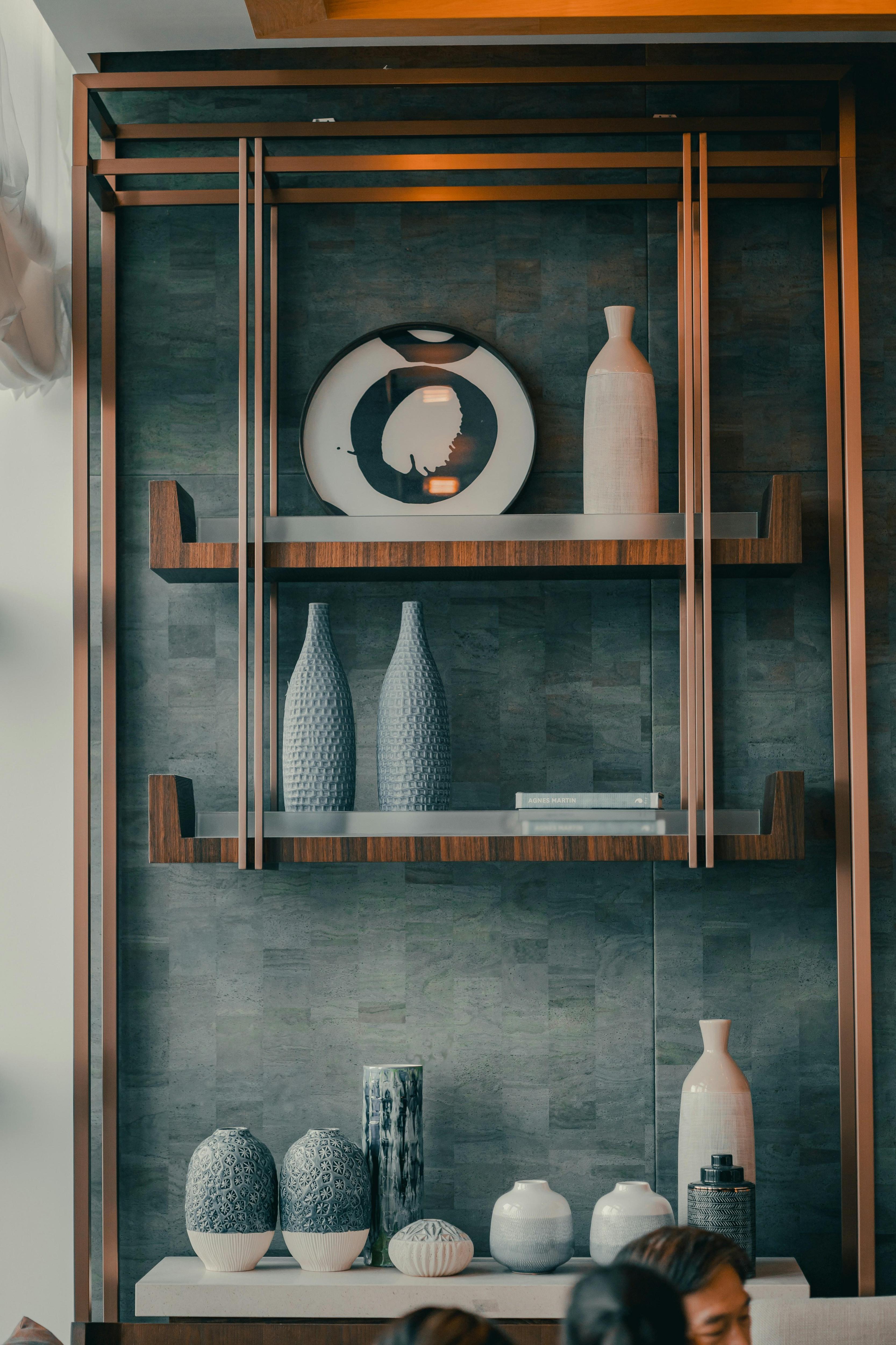 Такие полки чаще несут декоративную, а не утилитарную нагрузку, демонстрируя коллекцию сувениров, камней или морских раковин. Их расположение тщательно продумывают, чтобы они уравновешивали другие элементы в помещении.