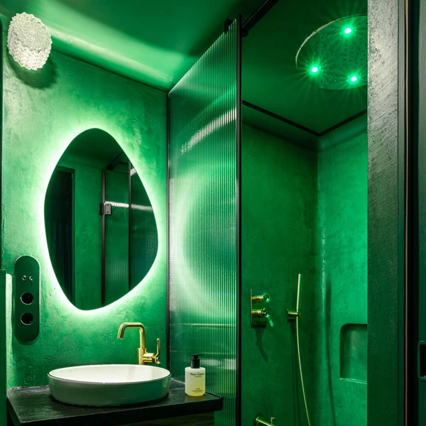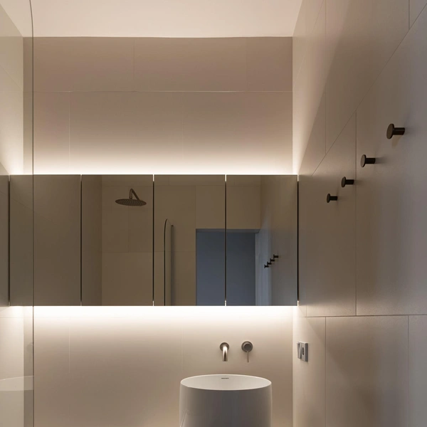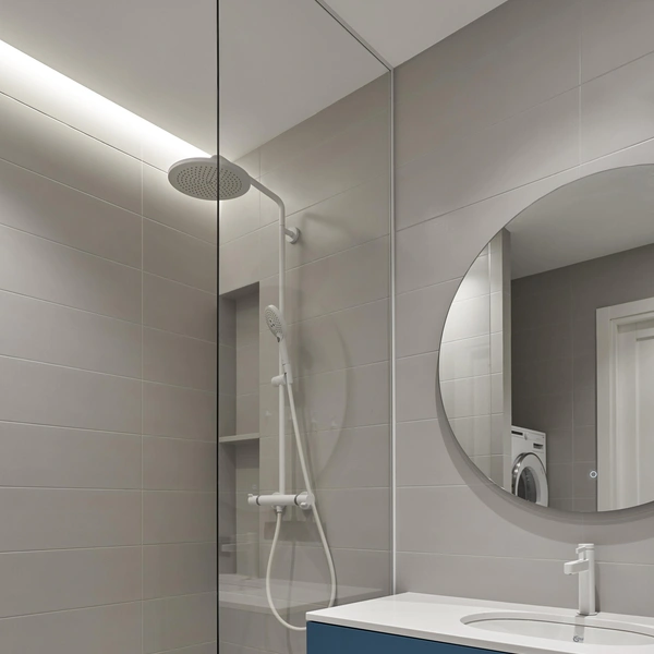 Для влажных зон необходимо использовать специальные влагозащищенные ленты и трансформаторы. Такая подсветка, интегрированная в общую электрическую схему ванной, создает законченный и профессиональный вид интерьеру.