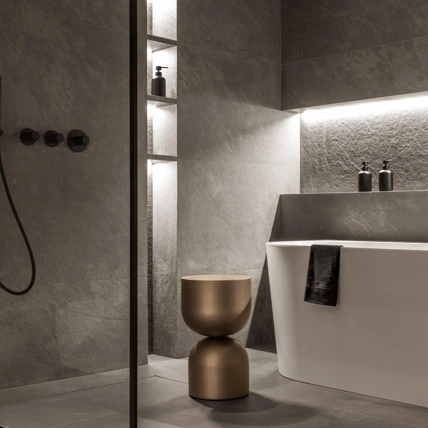 Эти встроенные полки идеально подходят для хранения того, что должно быть всегда на виду и под рукой: полотенец для рук, декоративного мыла, комнатных растений. Ниши часто имеют встроенную подсветку, которая включается при движении или с помощью отдельного выключателя.