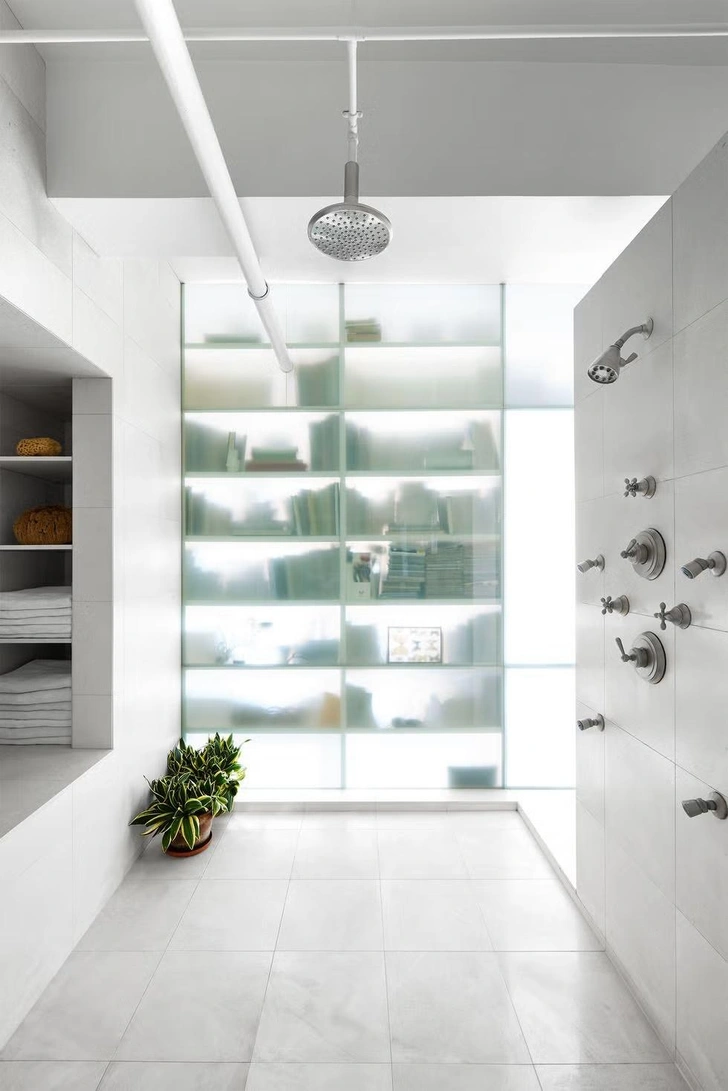 21. Полки, скрытые в конструкции душевой перегородки