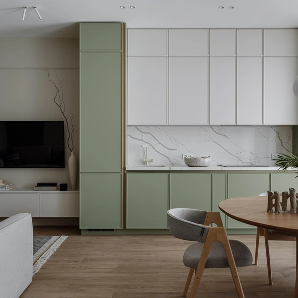 Оба варианта отражают принципы биофильного дизайна, где цвета, вдохновленные природой, способствуют благополучию и размывают границы между внутренним и внешним пространством. Этот оттенок также соответствует более широкой тенденции использования земляных тонов в дизайне кухонь.