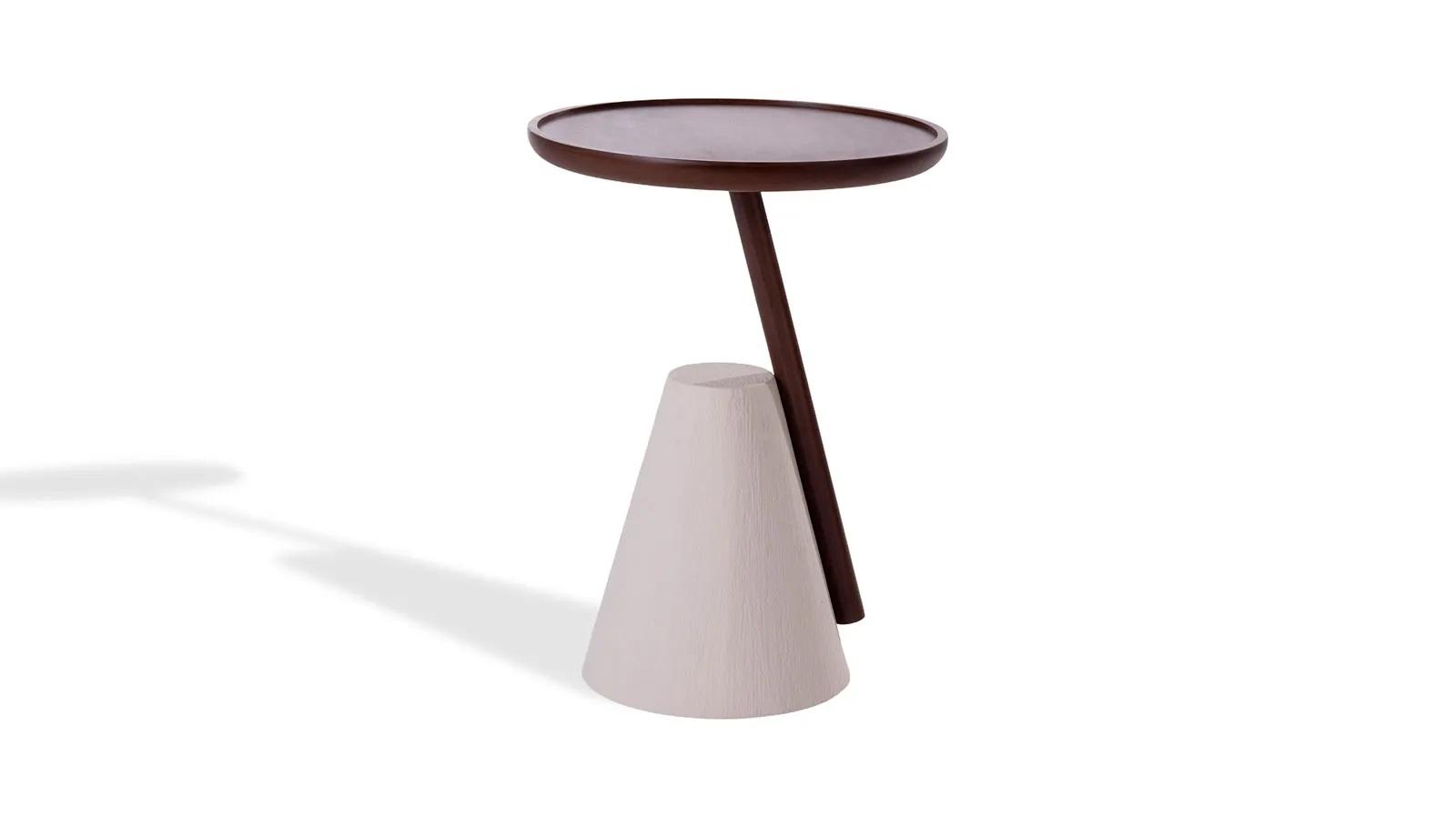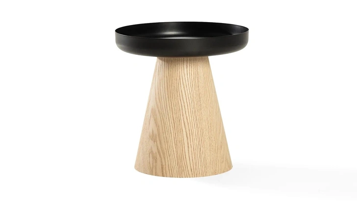 Или присмотритесь к Flip, который больше похож на арт-объект: фактура древесины контрастирует с металлической столешницей, а массивное коническое основание добавляет сходства со скульптурой. Похожий прием реализован и в моделях Wels и Wald, а еще один их плюс — съемная столешница с местом для хранения.