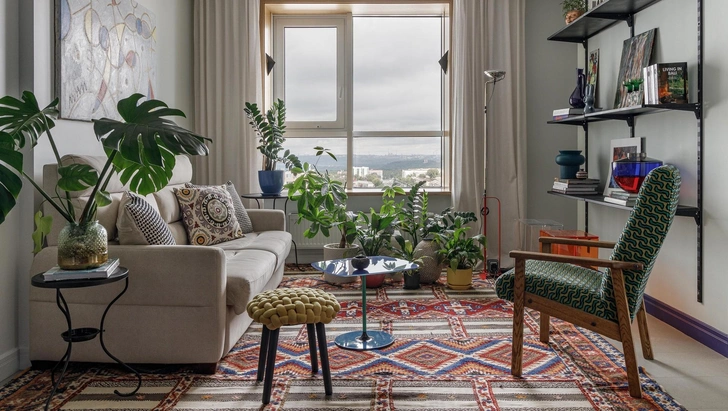 Проект Лилии Асфандияровой в Уфе. Часть мебели — советский винтаж.