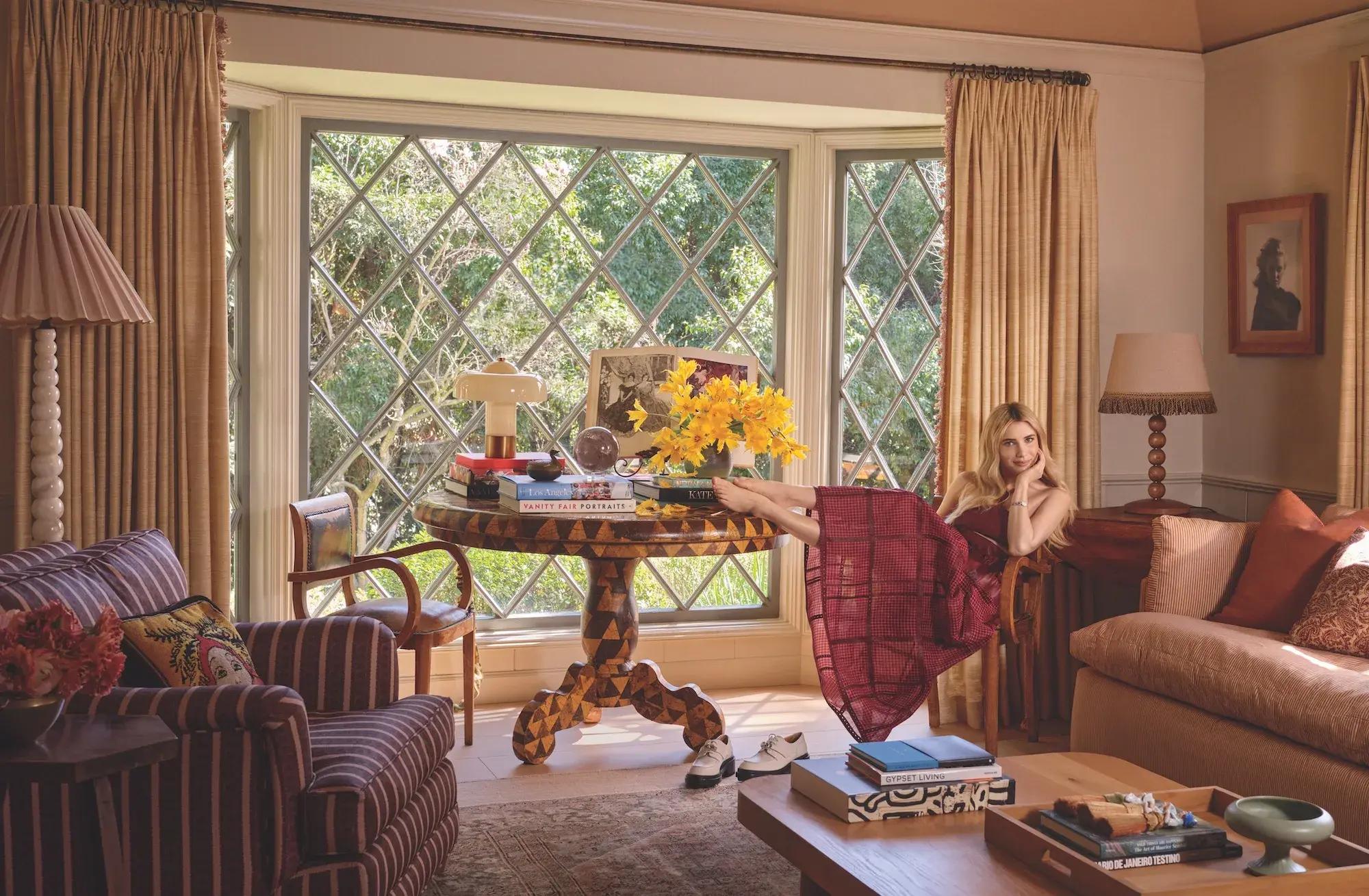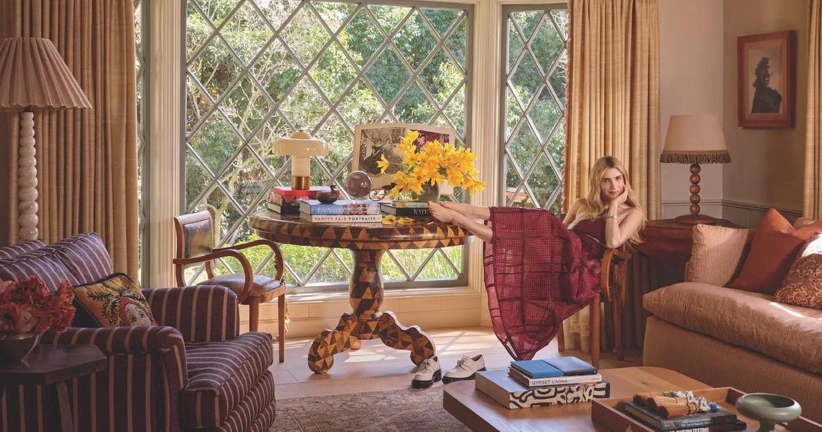 Интерьеры нового дома Эмме Робертс помогла оформить студия Pierce & Ward. Актриса поставила дизайнерам нестандартную задачу — создать пространство, которое не будет выглядеть новым, но в то же время будет неподвластным времени. Часто для этого выбирают усредненные аккуратные решения, но Эмма решила уйти в тотальный максимализм.
