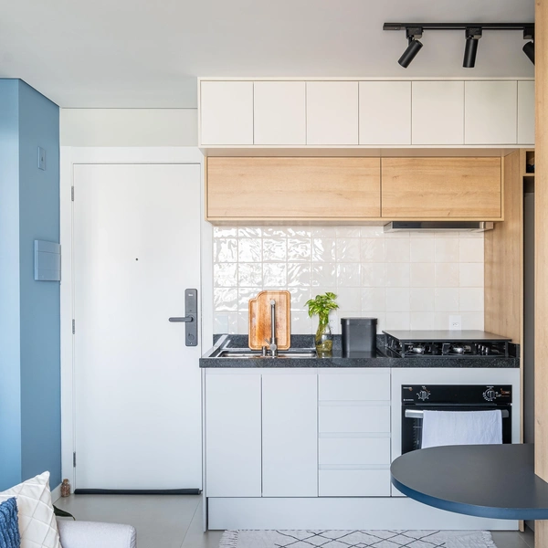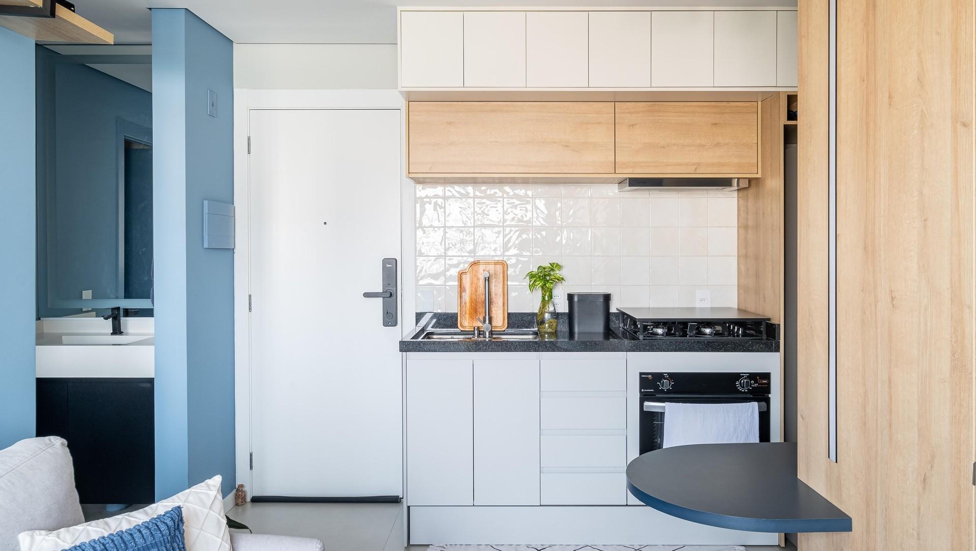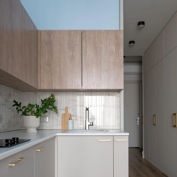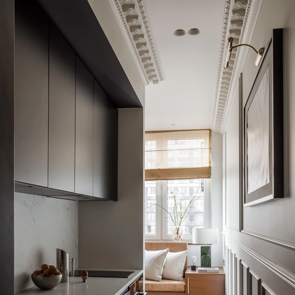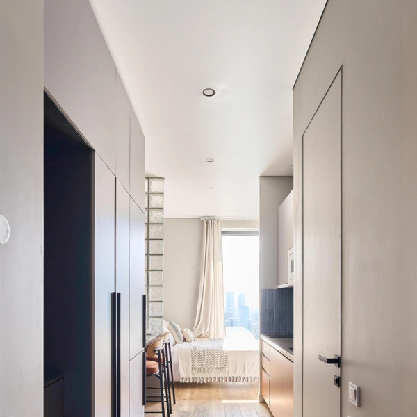 Если кухня совсем не помещается в маленькой квартире или студии (или вам хочется освободить гостиную), перенесите ее в коридор. Показываем, как можно это сделать