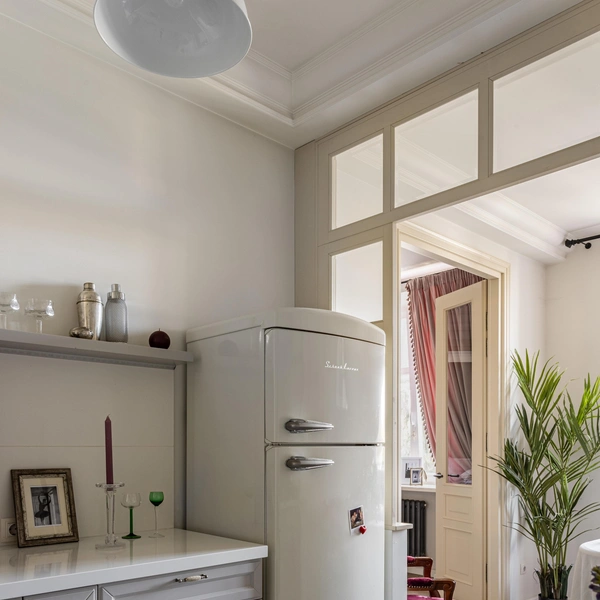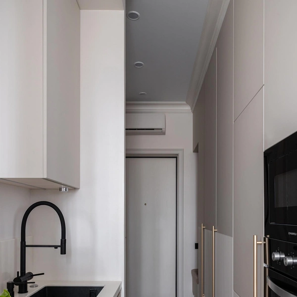 Кухня в коридоре — хорошее решение не только для маленьких площадей с непростой планировкой, но и для больших квартир, где хочется освободить комнату. Чаще всего коридор довольно узок, зато все необходимое точно поместится. Только учтите несколько нюансов: во-первых, перепланировку нужно согласовать (и в разных регионах свои требования, которые нужно уточнить), во-вторых — понадобится хорошая вытяжка, ведь проветрить такую кухню будет сложно. А еще подумайте, как решить вопрос с гигиеной, чтобы грязь с улицы не оказывалась в зоне готовки.