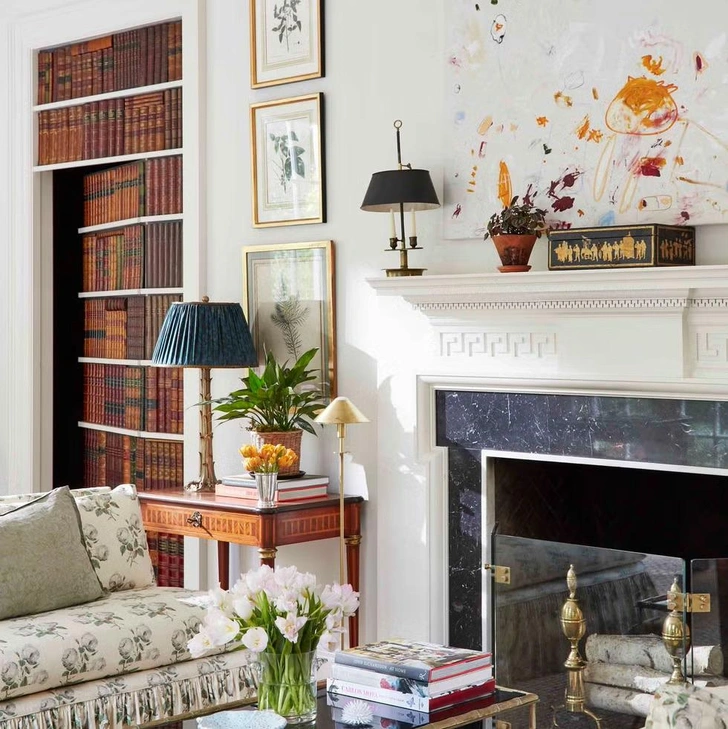 Мы рассказали, как выделить дверь. Но как насчет того, чтобы ее скрыть? Оформить это тоже можно необычно: не только сделать ее невидимой, повторив отделку стены, но и придумать какой-нибудь фальш-стеллаж с книгами.