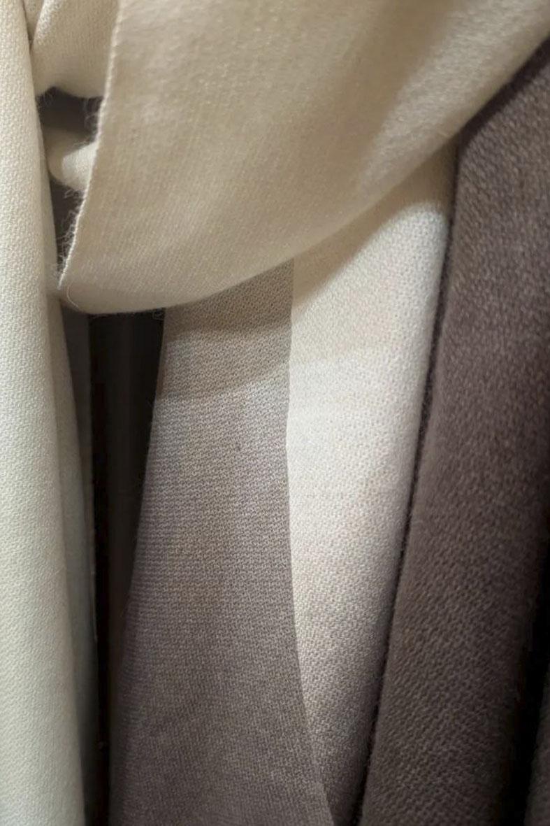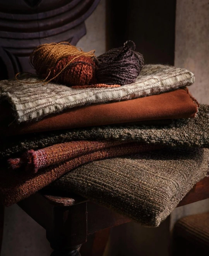 Говоря о «тихой роскоши», ручной работе и «честных материалах» невозможно пройти мимо тактильного богатства тканей de Le Cuona: нежный, словно суфле, стриженный льняной бархат, мягчайшие шерстяные полотна со знаменитым рисунком «пэйсли», тончайший лен, сделанный по уникальной технологии. Созданные с заботой об окружающей среде, они объединяют теплоту традиционных техник с возможностями высоких технологий, где цифровая точность гармонирует с несовершенством и душой ручного труда.