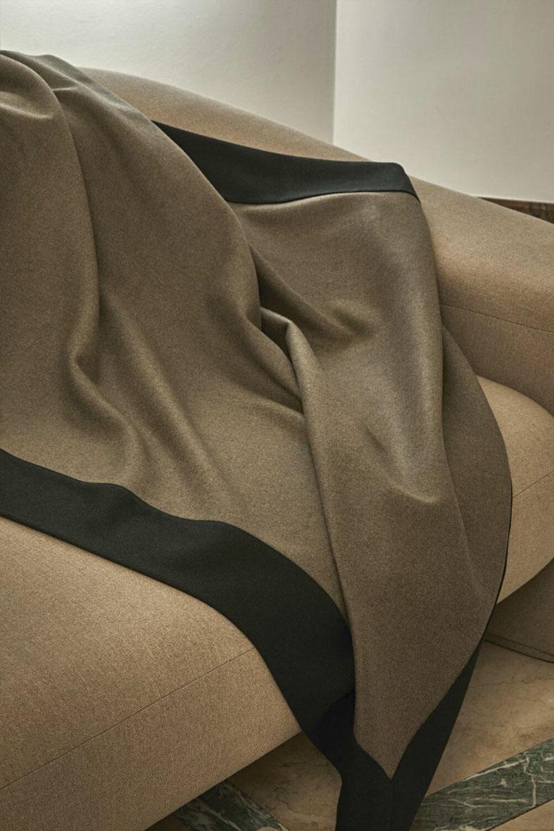 Новая коллекция текстиля и предметов интерьера Loro Piana Interiors, предлагает образ жизни, основанный на долговечности и сдержанности, и отлично вписывается в эту новую реальность. «Наши ткани созданы не для того, чтобы доминировать в помещении, а чтобы с уверенностью впитывать свет, время и дарить комфорт», — отмечают в Loro Piana Interiors. Изящный узор пейсли, вдохновленный древними гобеленами и выполненный в приглушенных коричневых тонах с использованием жаккардовой техники, становится ненавязчивым мостом между модой и интерьером, наследием и современностью. Главный бриллиант коллекции — шерсть Wish, ценимая за исключительную тонкость в 15 микрон.