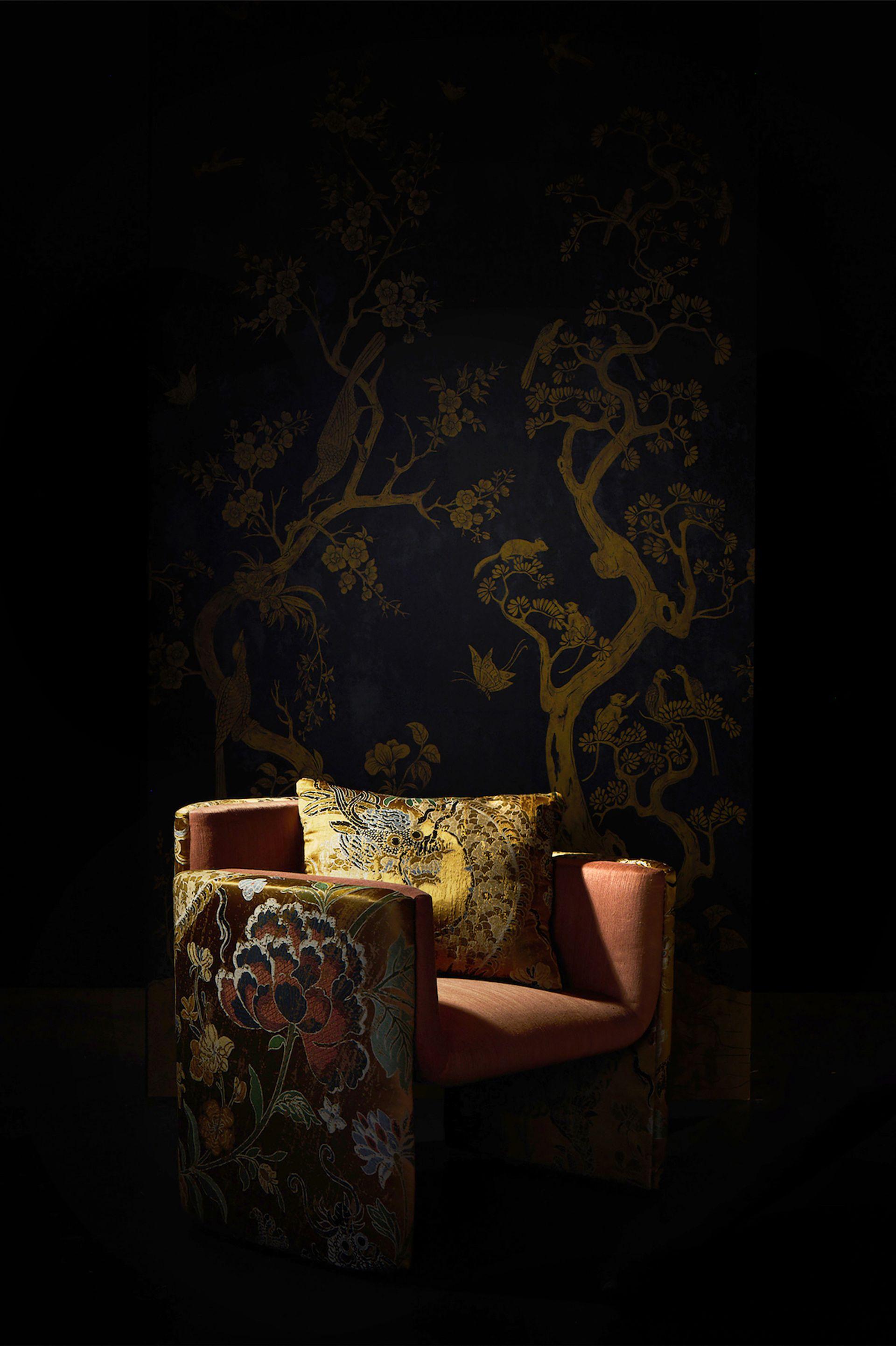 А поскольку стиль шинуазри через призму европейского вкуса предлагал современникам отвлечься от быстротечности мира, соединяя элементы барокко, рококо и великого китайского наследия, то тренд переосмысления затронул и его. Новые ткани, обои и настенные покрытия сохранили визуальную роскошь и экзотичность, но изменились технологии производства и материалы.