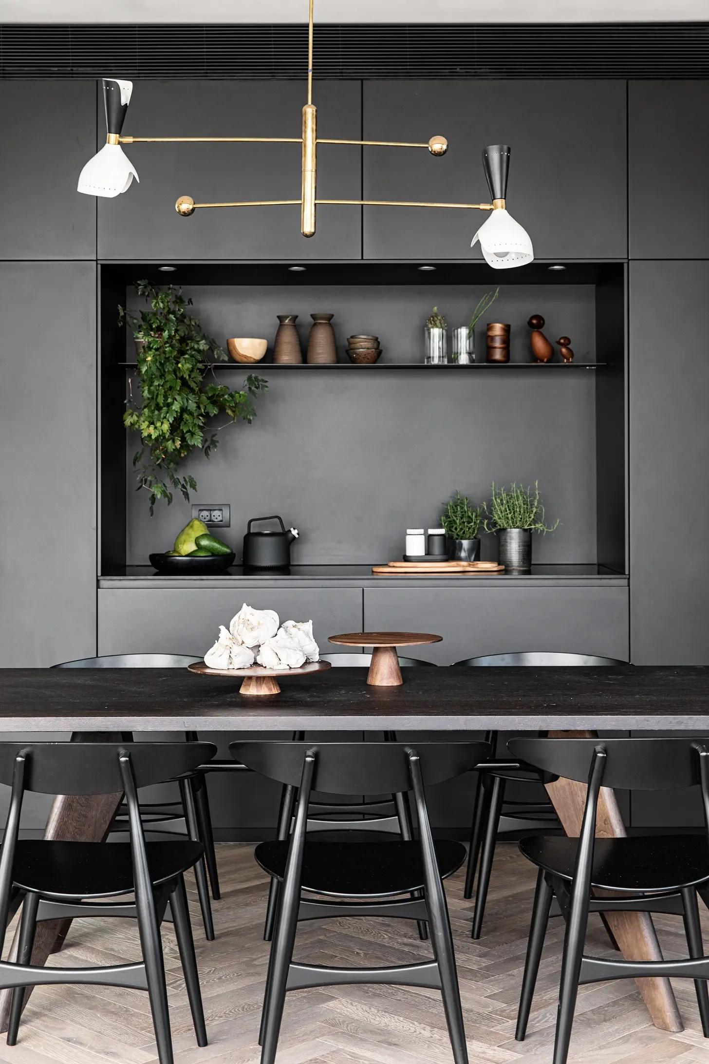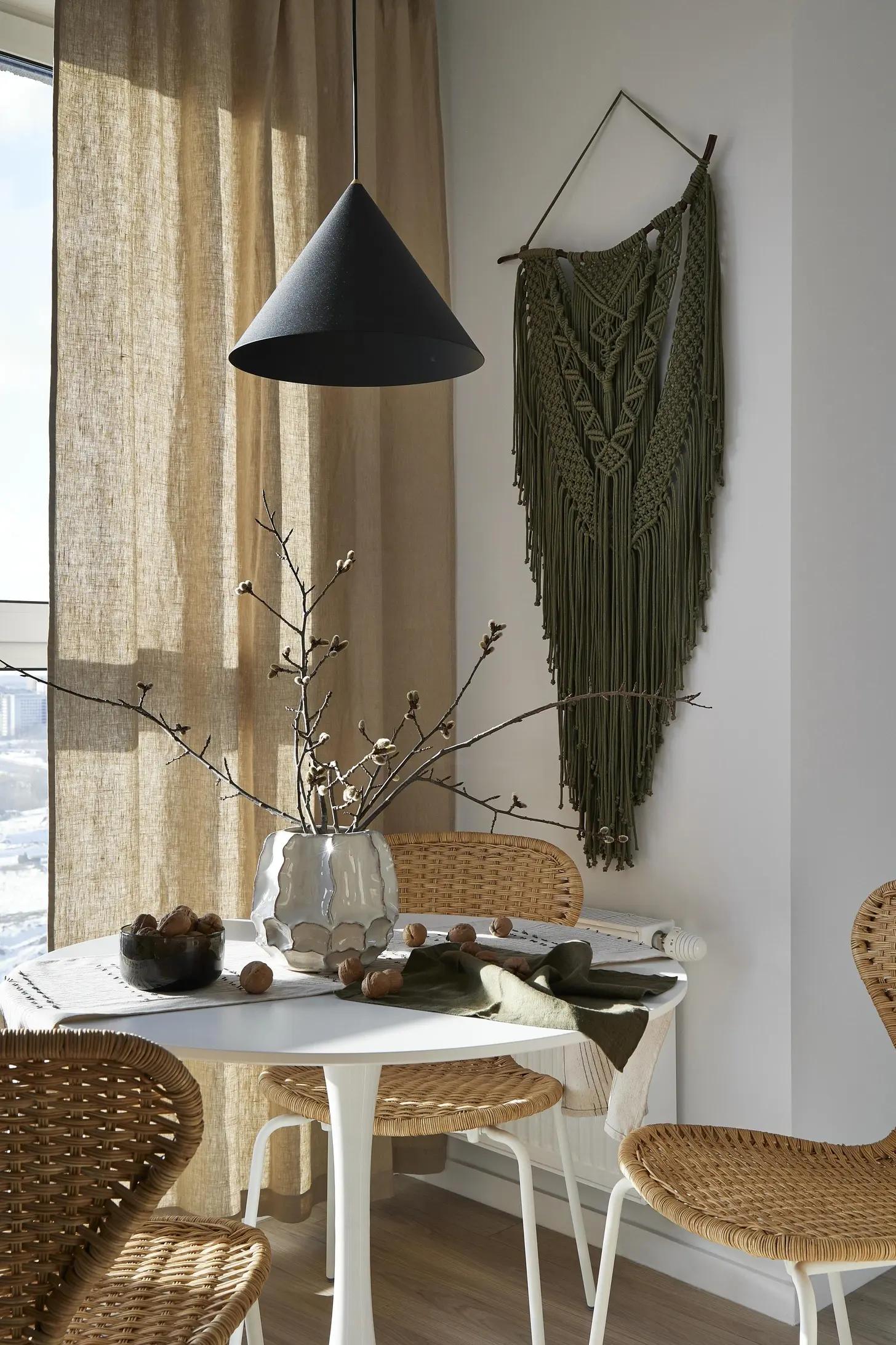Кухня. Стулья из ротанга, ИКЕА. Подвесной светильник, Nowodvorski. Ваза, Enzo De Gasperi.