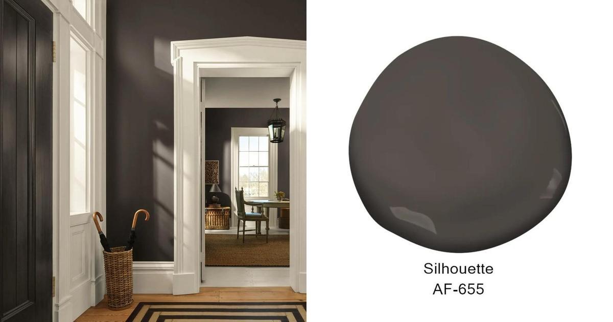 Silhouette — это что-то среднее по настроению между оттенком Benjamin Moore в 2023 году, малиновым румянцем, и фиолетово-коричневым оттенком 2025 года.