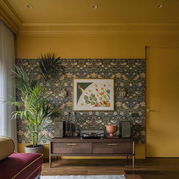 Броские элементы на однотонных стенах или одна стена контрастного цвета создают атмосферу любому интерьеру. В нашей подборке — самые интересные варианты российских и зарубежных дизайнеров