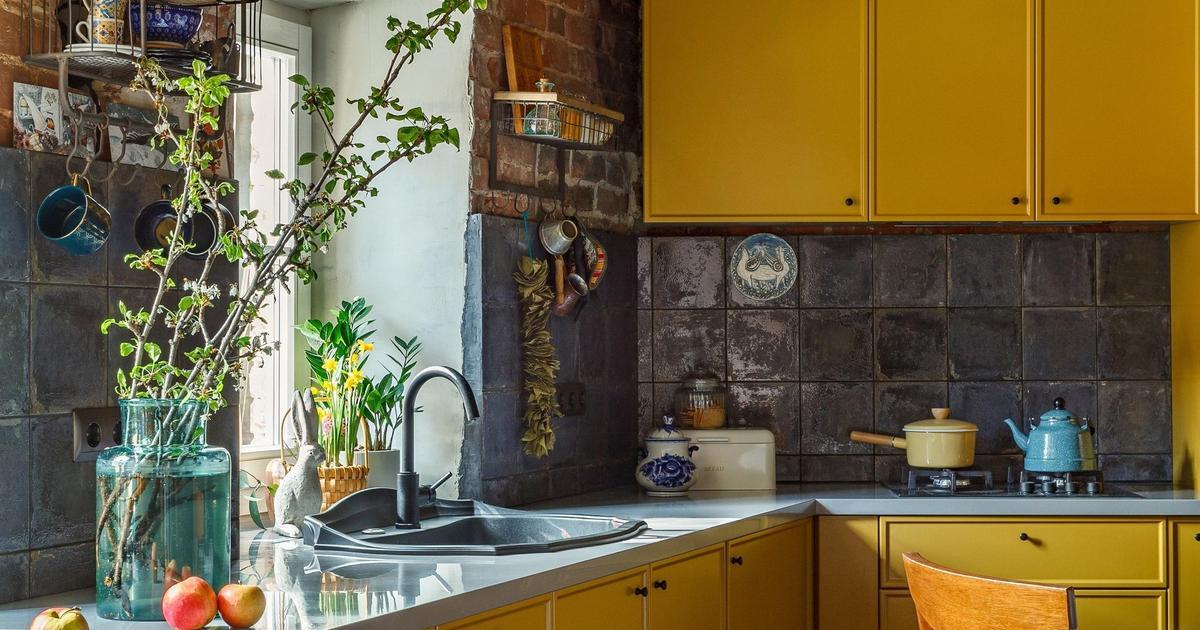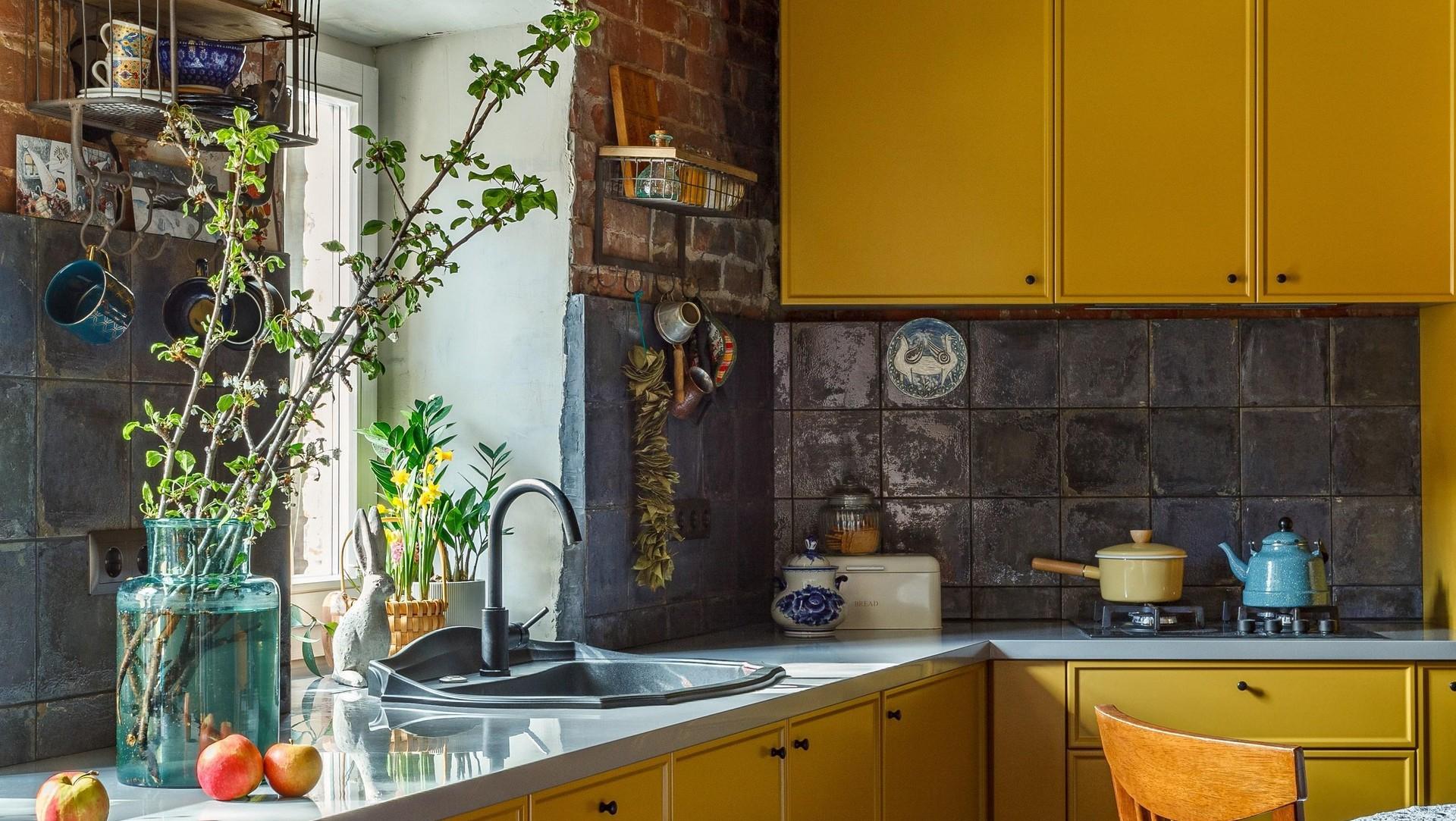 Горчичный цвет имеет массу оттенков: от позитивного светло-желтого до насыщенной охры с примесью коричневого. Чем теплее оттенок, тем уютнее и выразительнее смотрится пространство. А если в комнату проникает естественный свет, горчичный приобретает приятные медовые нотки. Горчичный любит большие пространства, но даже на небольшой площади можно удачно выделить им акценты.