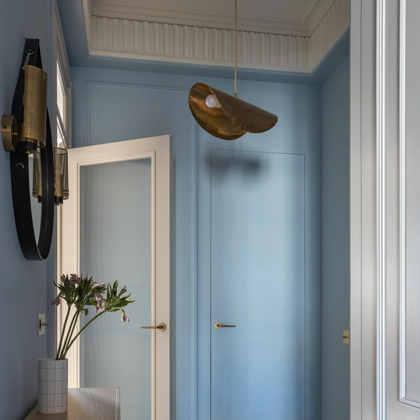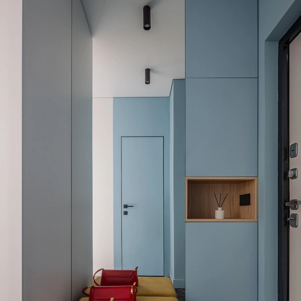Голубые оттенки — отличное решение для прихожей, которая обычно не отличается большими размерами и часто страдает от отсутствия дневного света. Голубой не только наполняет пространство уютом и умиротворением, но также создает ощущение свежести, прохлады, навевая ассоциации с небом, морем, безмятежностью. Богатая голубая палитра насчитывает массу оттенков — от насыщенных васильковых до полупрозрачных, зеленовато-бутылочных, которые отлично сочетаются друг с другом. Также голубой хорошо смотрится с теплой терракотой, черным, белым, бежевым, солнечно-желтым, розовым, зеленым. Это универсальное решение и беспроигрышный вариант для любых интерьеров. Вдохновляющие примеры из проектов российских и зарубежных дизайнеров — в нашей подборке!