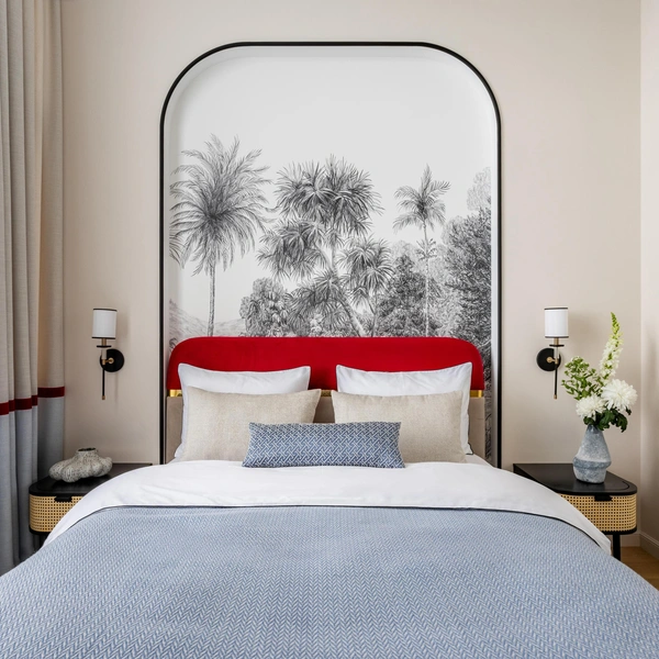 Красный — один из самых ярких оттенков в интерьере, и работать с ним нужно осторожно. Чуть ошибешься с оттенком, интенсивностью или количеством — и эффект может вас разочаровать. Слишком активное, агрессивное красное пространство может подавлять и, если верить психологам, даже приводить к депрессивным расстройствам. Особенно аккуратно следует использовать красный и его оттенки в интерьере спальни, если вы не хотите, чтобы ваш оазис покоя и уюта стал напоминать бордель. Для стен выбирайте теплые терракотовые, насыщенные бордовые или сглаженные пастельные оттенки, а яркие краски используйте для акцентов и деталей. Мы собирали для вас примеры использования красного цвета в спальне из проектов российских и зарубежных дизайнеров. Листайте и вдохновляйтесь!