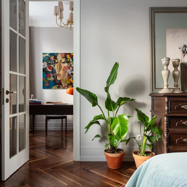 Озеленение — несомненный тренд последних лет. И если раньше растения «жили» по большей части на подоконнике в гостиной, то сегодня они заполоняют все пространство квартиры, начиная от прихожей и заканчивая ванной комнатой. Для спальни лучше всего подходят теневыносливые растения, поскольку, ложась спать, мы обычно закрываем шторы, а утром нередко забываем их открывать. Одни из самых удачных вариантов: хамедорея, спатифиллум, эпипремнум и замиокулькас. Они все хорошо себя чувствуют как при ярком освещении, так и в тени, и не требуют сложного ухода.