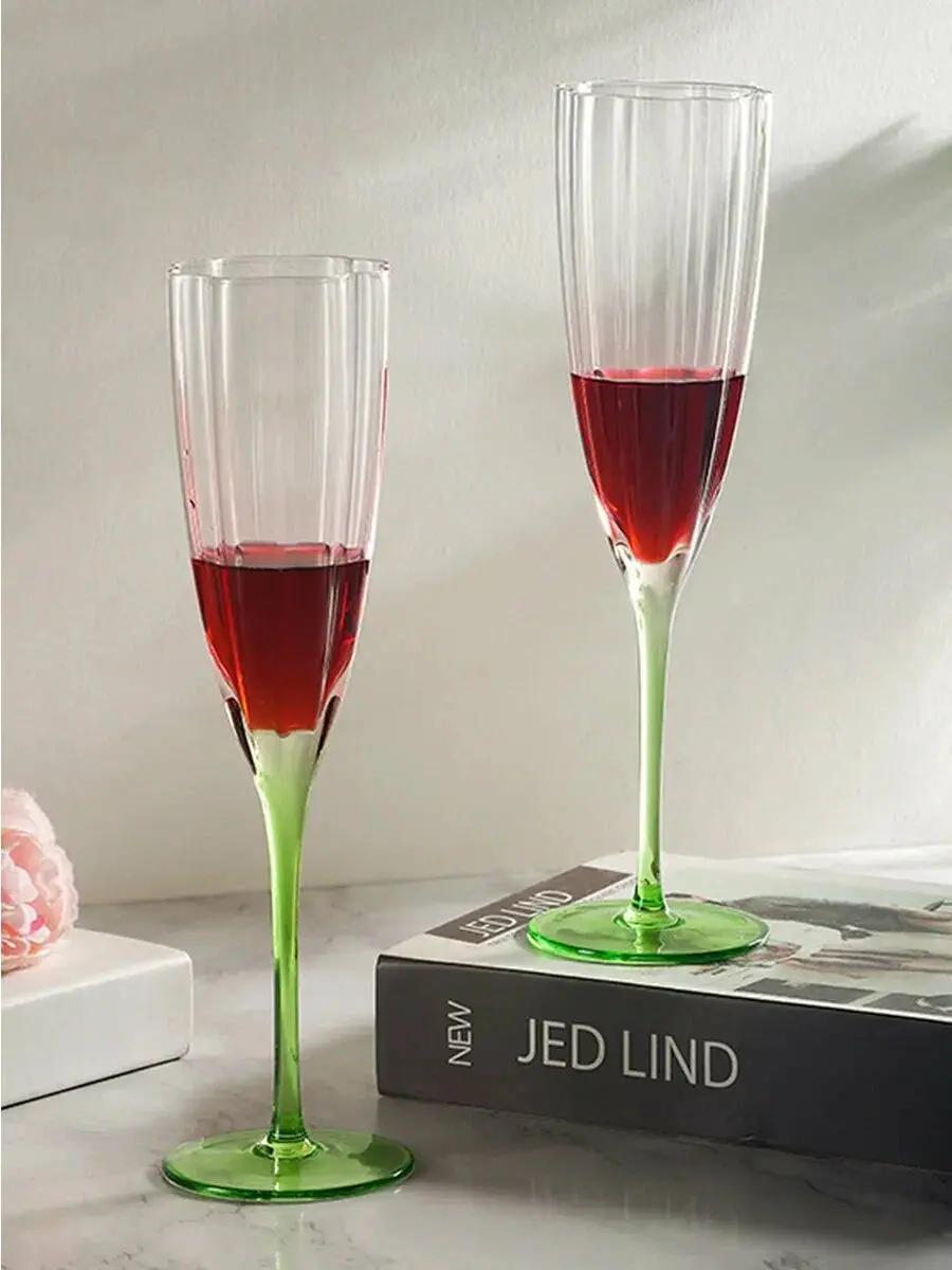 Чаши бокалов имеют трендовую ромбовидную форму, а мягкие грани создают интересный оптический эффект