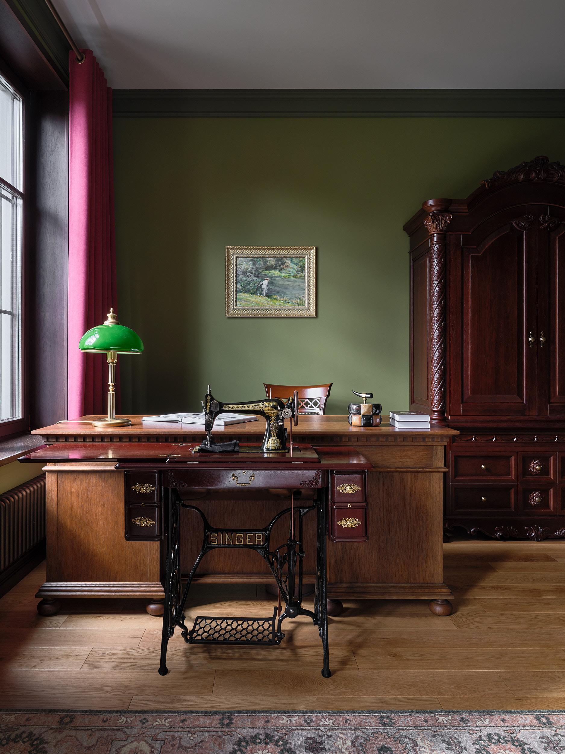 Зеленый шкаф изготовлен на заказ и расписан художниками компании Myartobject по эскизам дизайнера.
