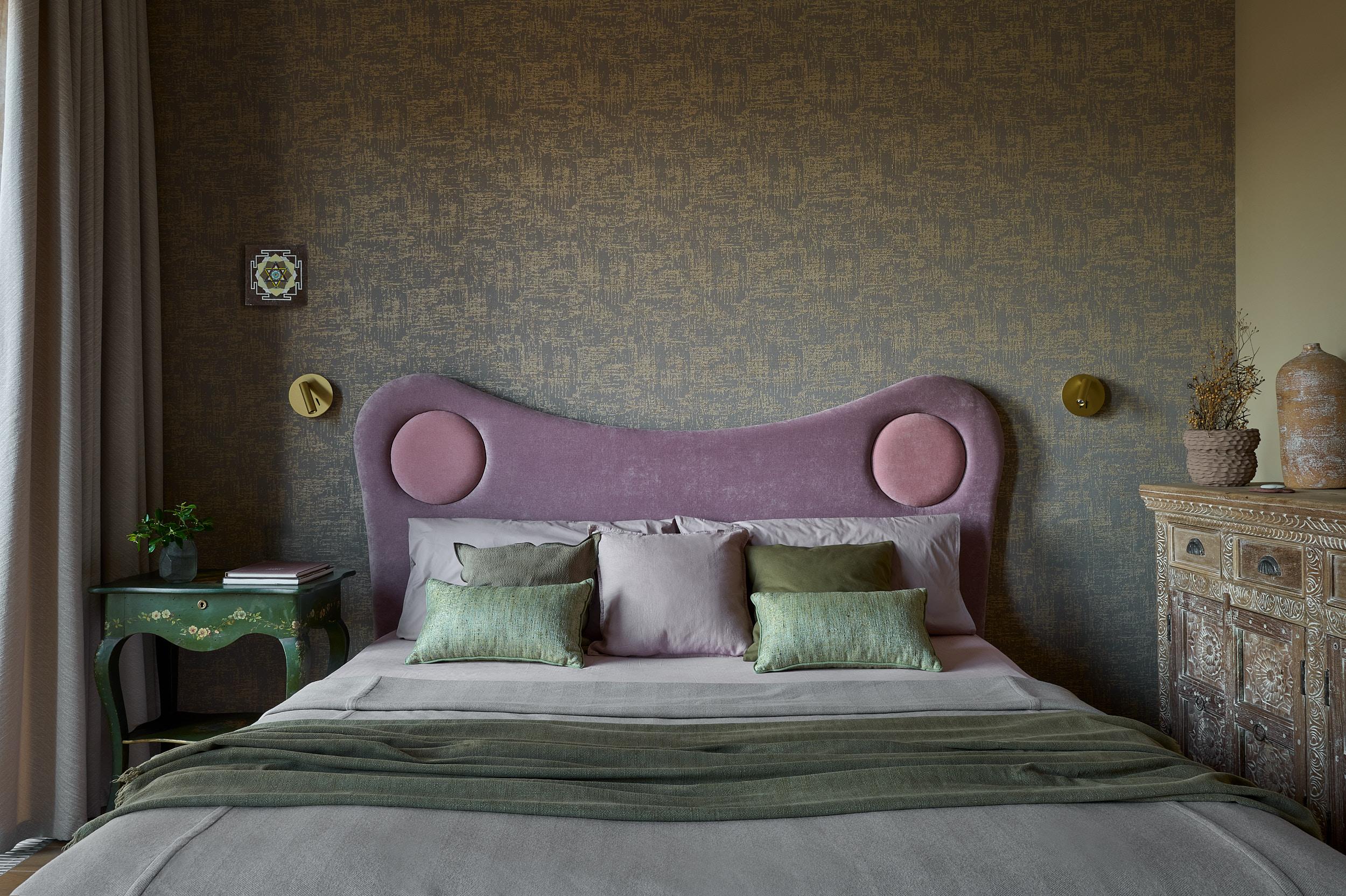 Кровать изготовлена на заказ по эскизам дизайнера. Обои, Mahieu. Янтра Луны, Ольга Ткачева.