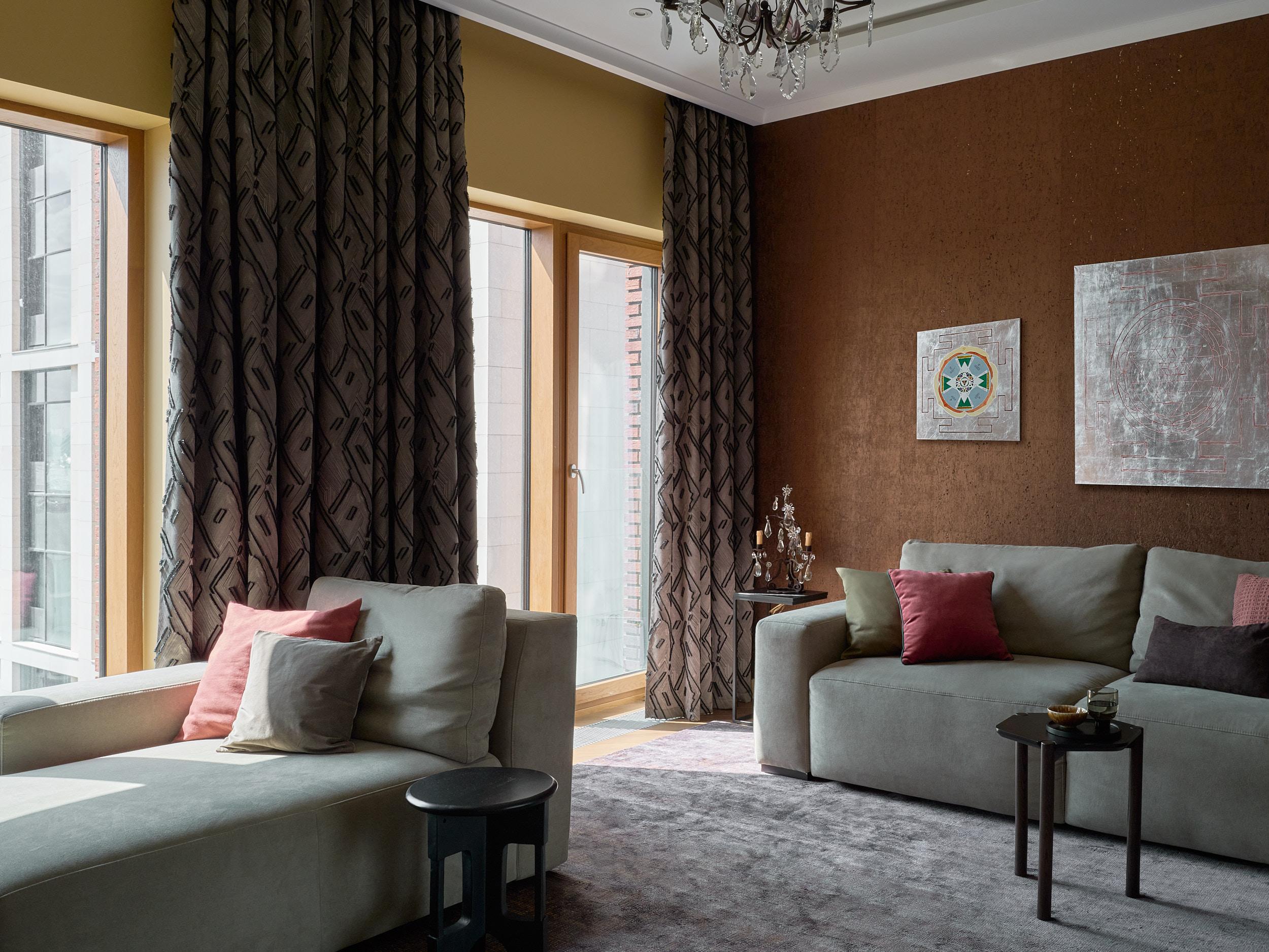 Ковер, Kover.ru. Обои, York. Диваны, Mobel&Zeit. Шторы из ткани Aldo Tesutti. Жирандоль, антиквариат.