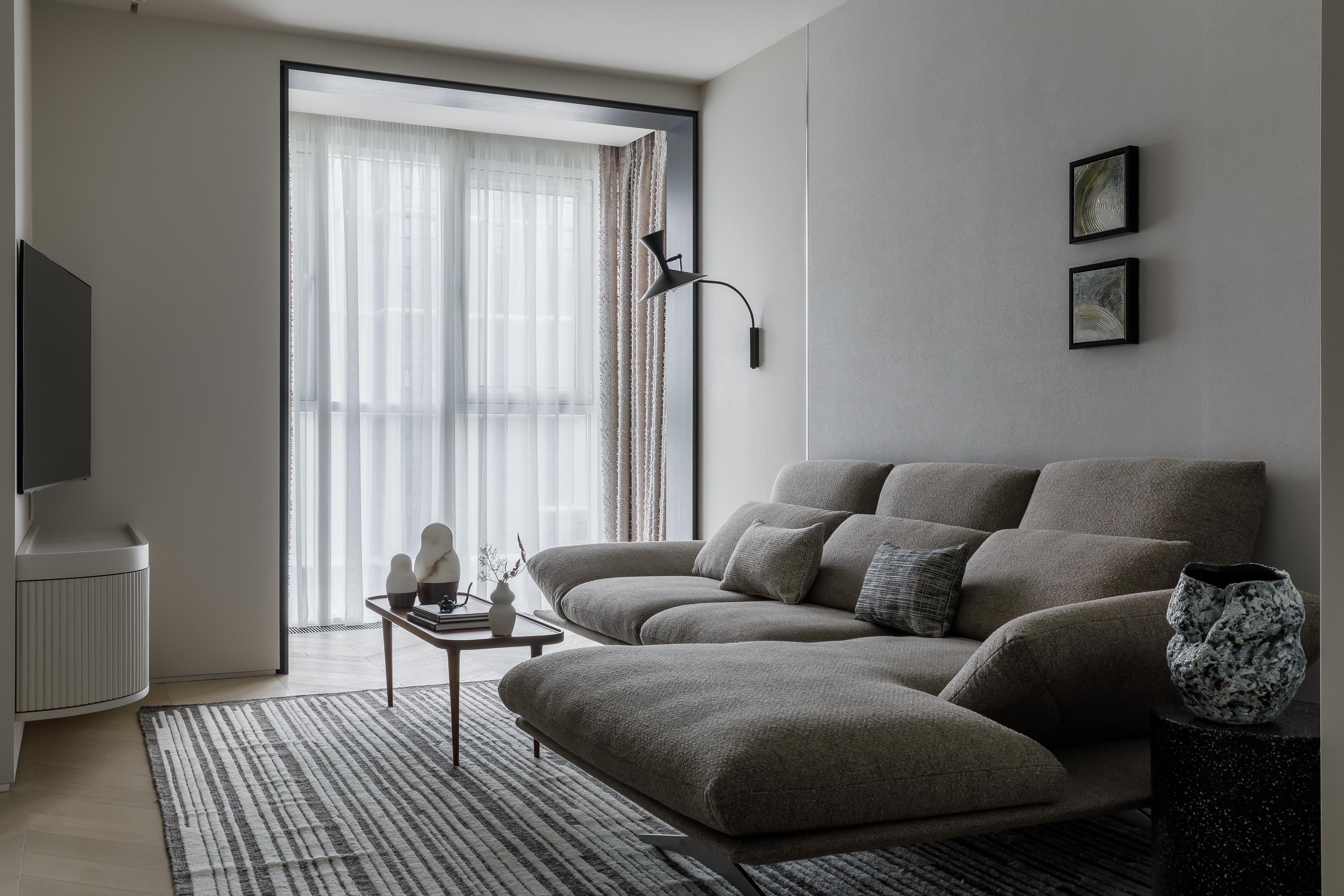 Тема моря реализована не через клише, а через ассоциации. Блики на воде стали основой для светового сценария, морская рябь — фактурой обивки, а рисунок натурального мрамора напоминает подводный мир. Сама по себе квартира не очень большая, так что было важно сохранить ощущение простора, воздушности. В этом нам помогли правильная работа с пропорциями, умение отказаться от лишнего и цветовая гамма светлого песочного берега.