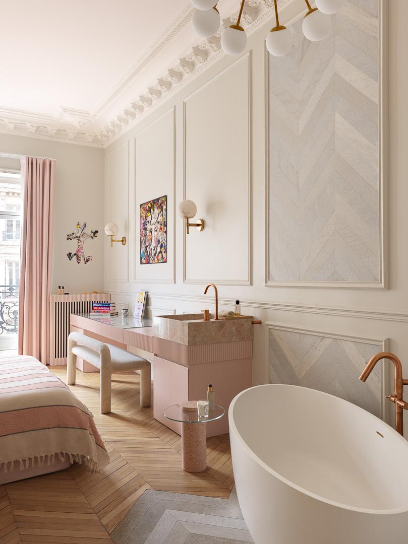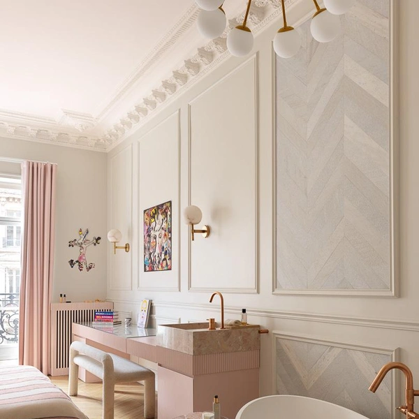 Большинство ее проектов — это роскошные парижские квартиры. «Я всегда стараюсь сохранить архитектурный дух здания, а после добавляю более современные детали и мебель, чтобы создать контраст с классикой», — говорит она.