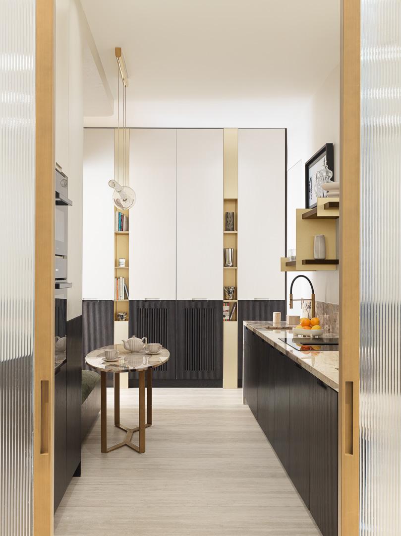 В целом, дизайнер не очень любит традиционные витражи, которые встречаются в большинстве квартир, которые она ремонтирует. «Всегда предпочитала создавать новые, узоры в стиле Мондриана с помощью фактурного стекла». Но здесь Сара решила сделать исключение из правила, сохранив оригинальный витраж на кухне: «Я рискнула, подумала, что это добавит красок».