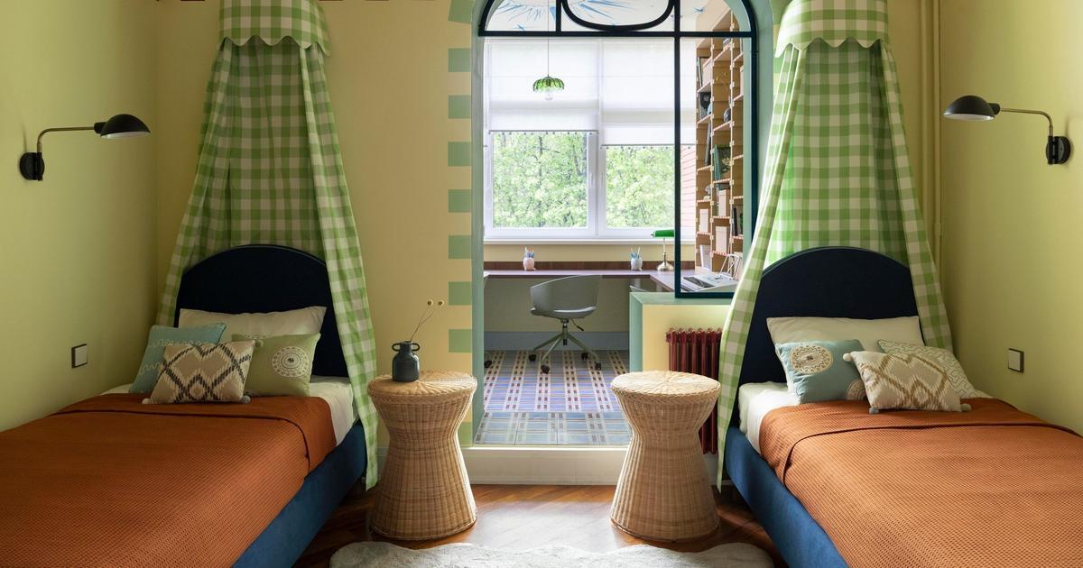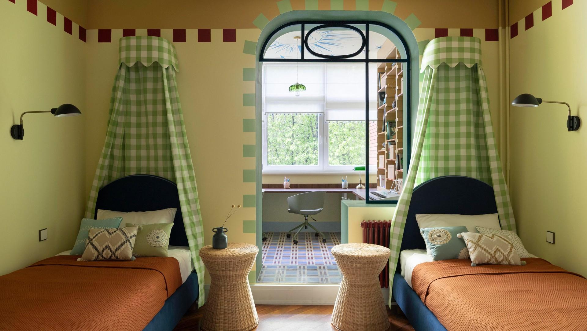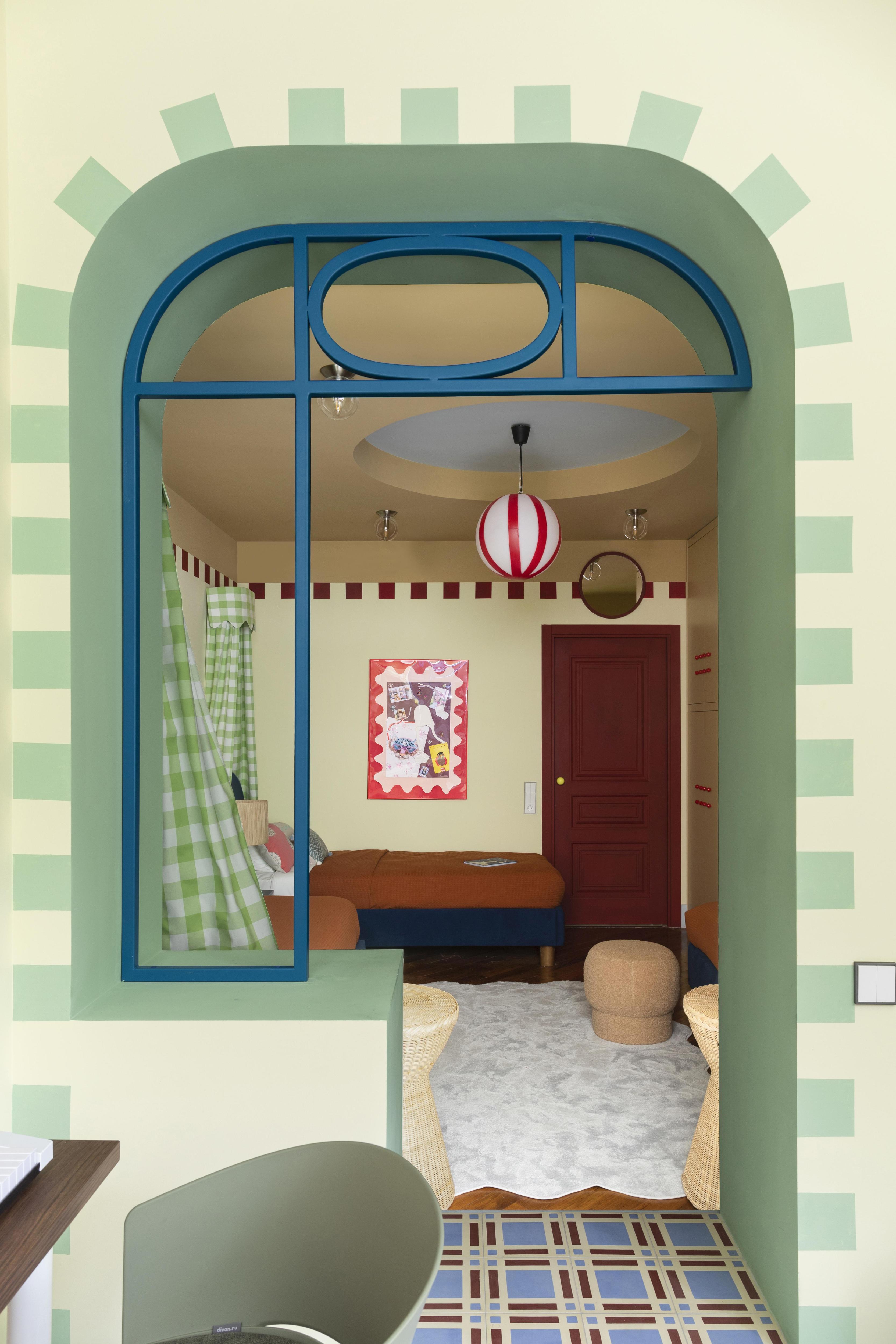 Любимый персонаж детей — медвежонок Паддингтон. Так что мы подсмотрели цветовую палитру, принты и формы в доме семьи Браунов. К тому же, у заказчиков с персонажами действительно много общего, поэтому проект был особенно трогательным.