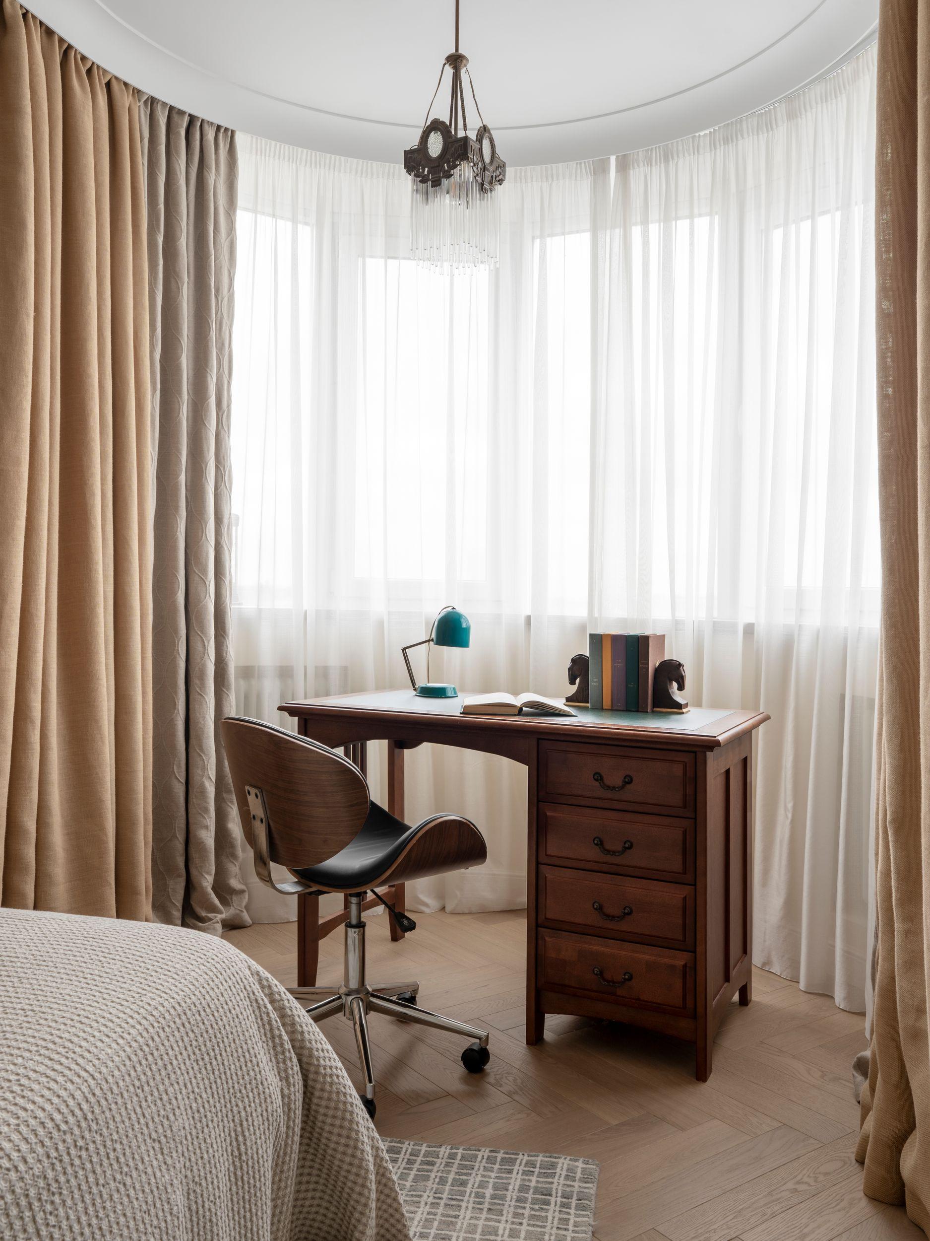 Стол, винтаж. Кресло, La Redoute. Люстра, антиквариат, XIX век. Декор на столе, Izzy Decor. Шторы, ILIV fabric.