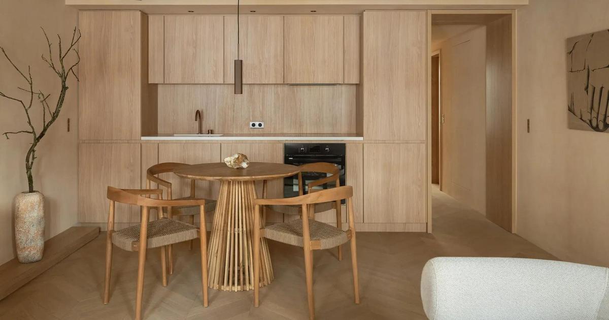 Ключевым инструментом в борьбе с ощущением тесноты стало дерево. «Я добавил вертикали с помощью внутренних ставень, экранов для радиаторов и высоких дверей шкафов, чтобы визуально приподнять потолки», — объясняет Цзяхао Ляо.