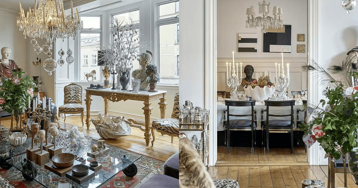 Барокко, леопардовый принт, пудели и эффектные композиции — все это создает особую атмосферу в апартаментах в Копенгагене. По словам владельца, дизайнера Карстена Баха (Karsten Bach), при создании праздничного настроения или пространства он привык идти до конца. Его стиль действительно поразителен, а исторические отсылки стали неотъемлемой частью визуального языка.