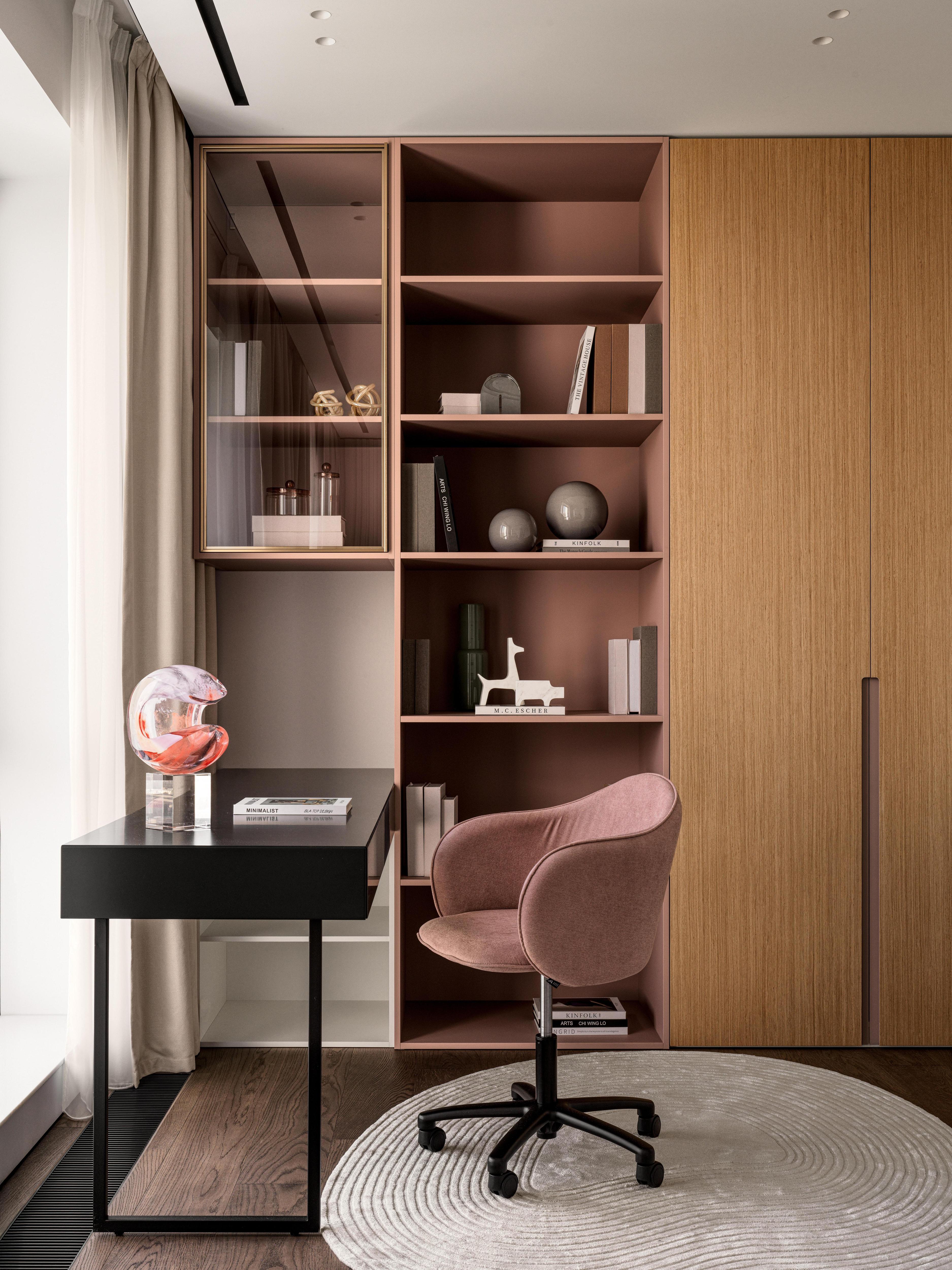 В зонировании мы использовали стеклянные перегородки, продуманное освещение с разными сценариями и акцентами, геометрию и ритм (вертикальные профили и фрезеровка). Кроме того, особый объем помогли придать интересные элементы — например, природные фактуры, натуральные материалы и декоративная штукатурка.