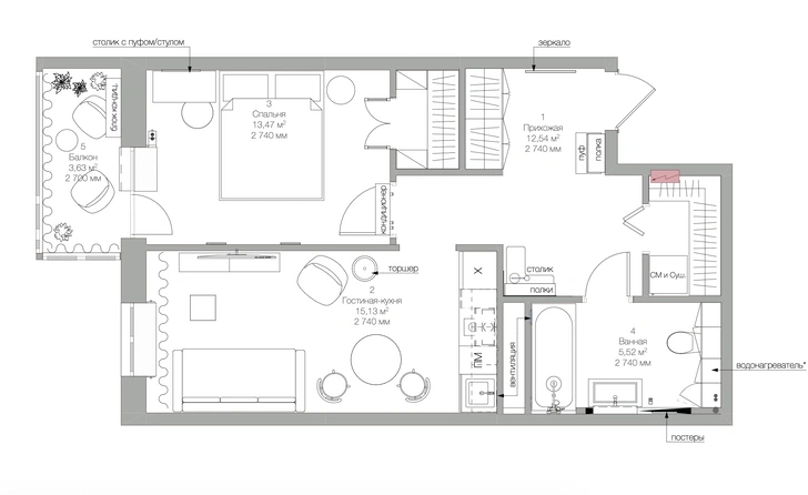 План квартиры 50 кв. м. Проект Оксаны Рябовой и Любови Орловой.