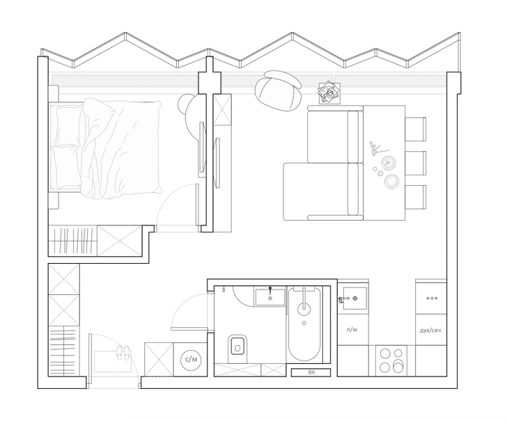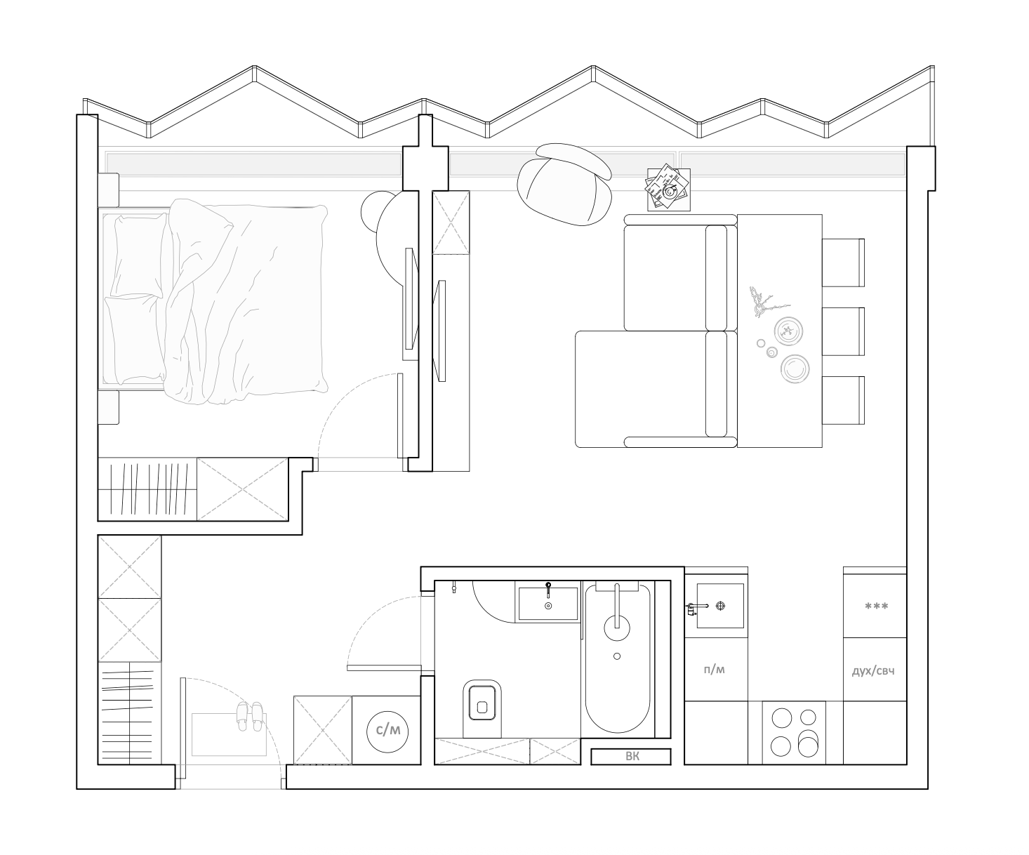План квартиры 44 м². Проект Данили Хутбеевой.