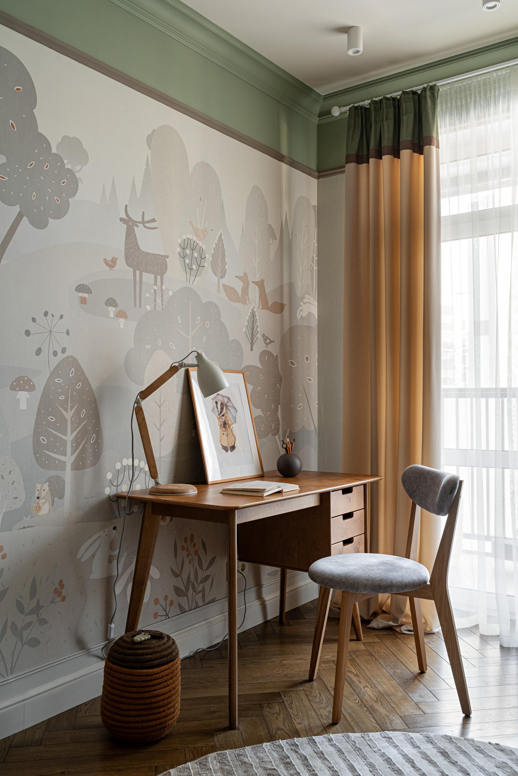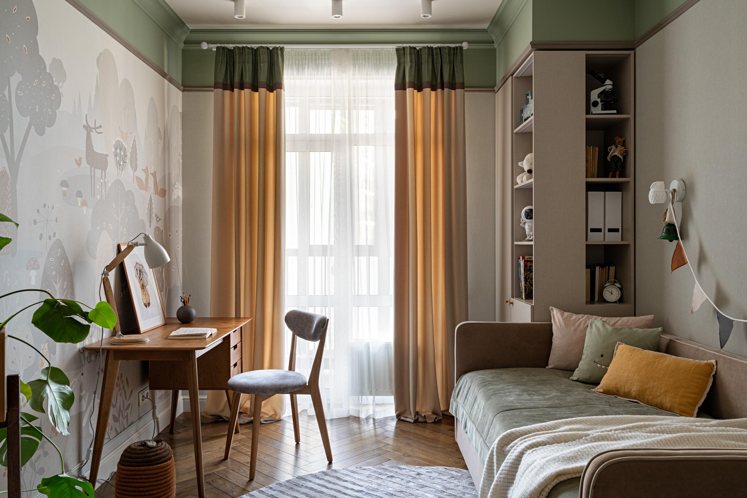 Фреска, Affresco. Рабочее место, SK Design. Текстиль, декоратор Динара Авхадиева. Освещение, Maytoni. Бра, Favourite. Кровать, Shikana furniture factory.